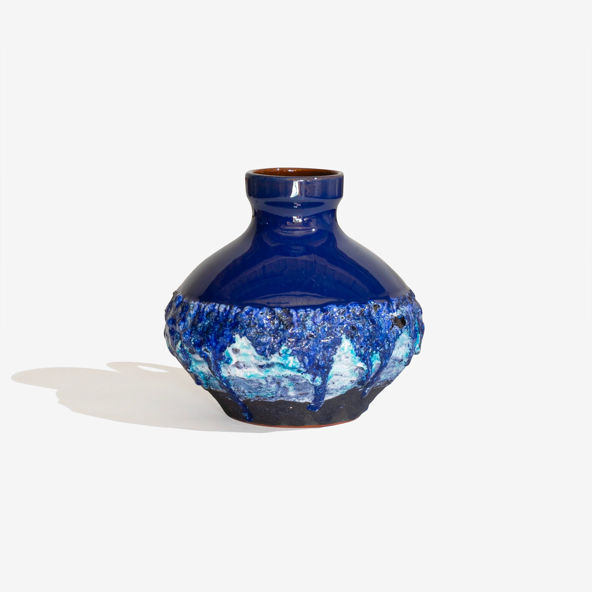 1950年代から1970年代にかけて主に旧西ドイツで製造された「Fat Lava」と呼ばれる陶器製アート。Fat Lava を直訳すると「Fat=肥えた」「Lava=溶岩」。釉薬がまるで溶岩にように溶け出て固まったようなテクスチャーが特徴の陶器製品です。第二次世界大戦後、旧西ドイツでは「West German Art Pottery」と呼ばれる芸術性を取り入れた陶器製品を積極的に生産する動きがあり、その流れで生まれたのが「Fat Lava」です。