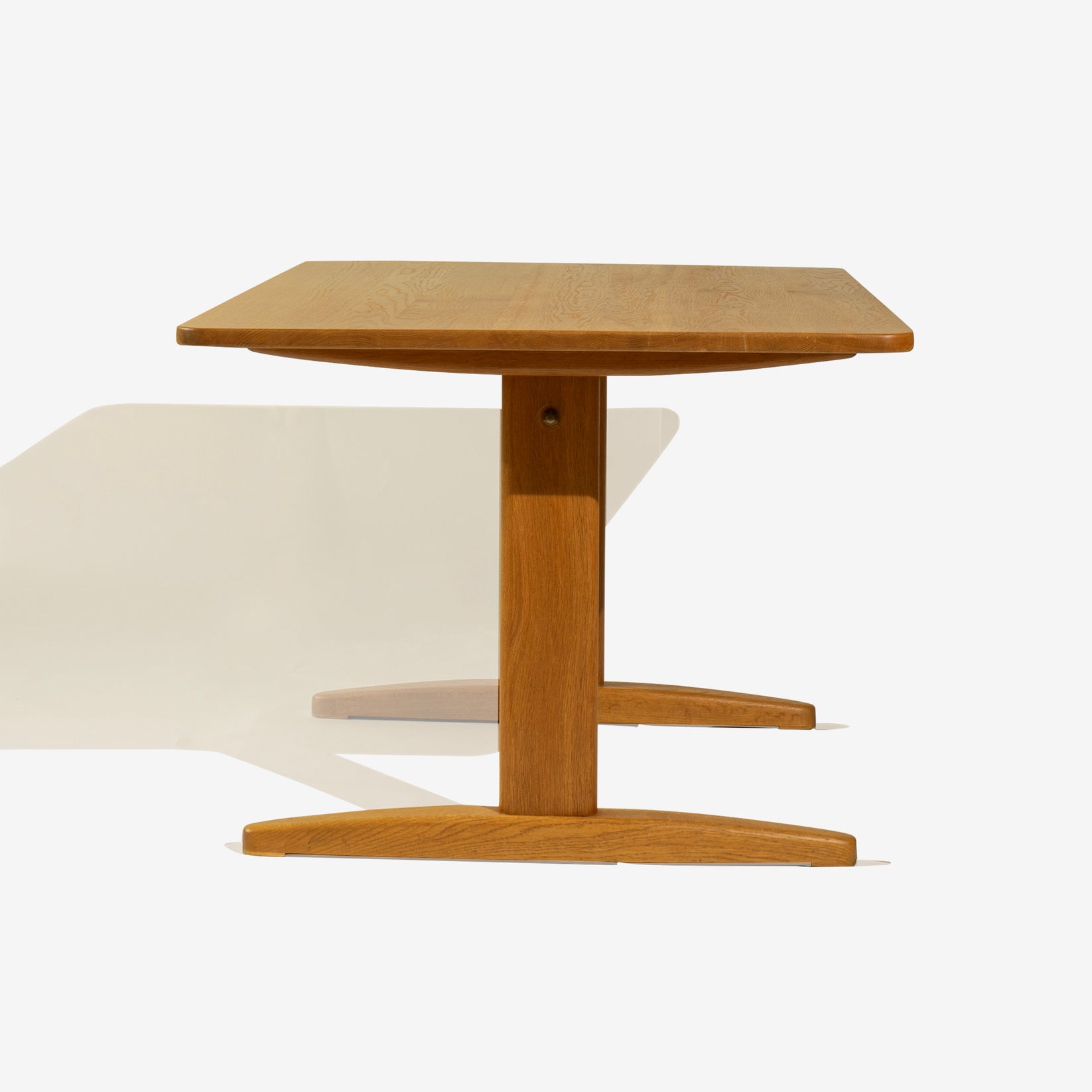 商品説明Borge Mogensen(ボーエ・モーエンセン)がアメリカのシェーカースタイルの家具から影響を受けてデザインしたダイニングテーブルです。 良質なオークの無垢材が使用されています。アールがかった天板、角をとった脚などが優しい雰囲気を醸し出し、細部にこだわりの感じられるシンプルなデザインながらもとても美しいテーブルです。 サイズは140cmで日本のコンパクトな住宅にも使いやすいサイズです。 シンプルな見た目ですが、モーエンセンのこだわりの感じられる奥の深いテーブルです。