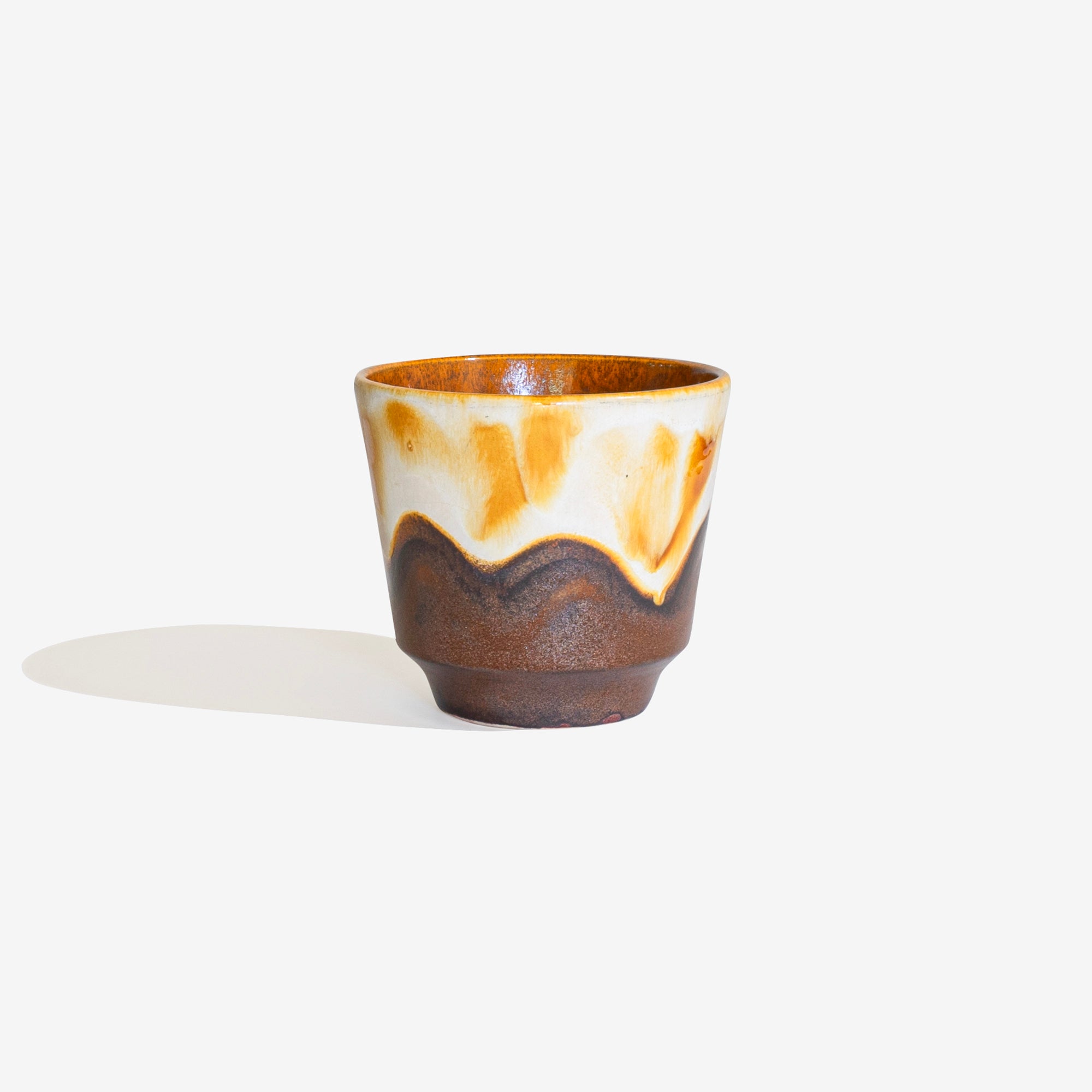 1970年代に作られたUBELACKER KERAMIC社製のフラワーポット。黄色の大胆な釉薬模様が印象的です。