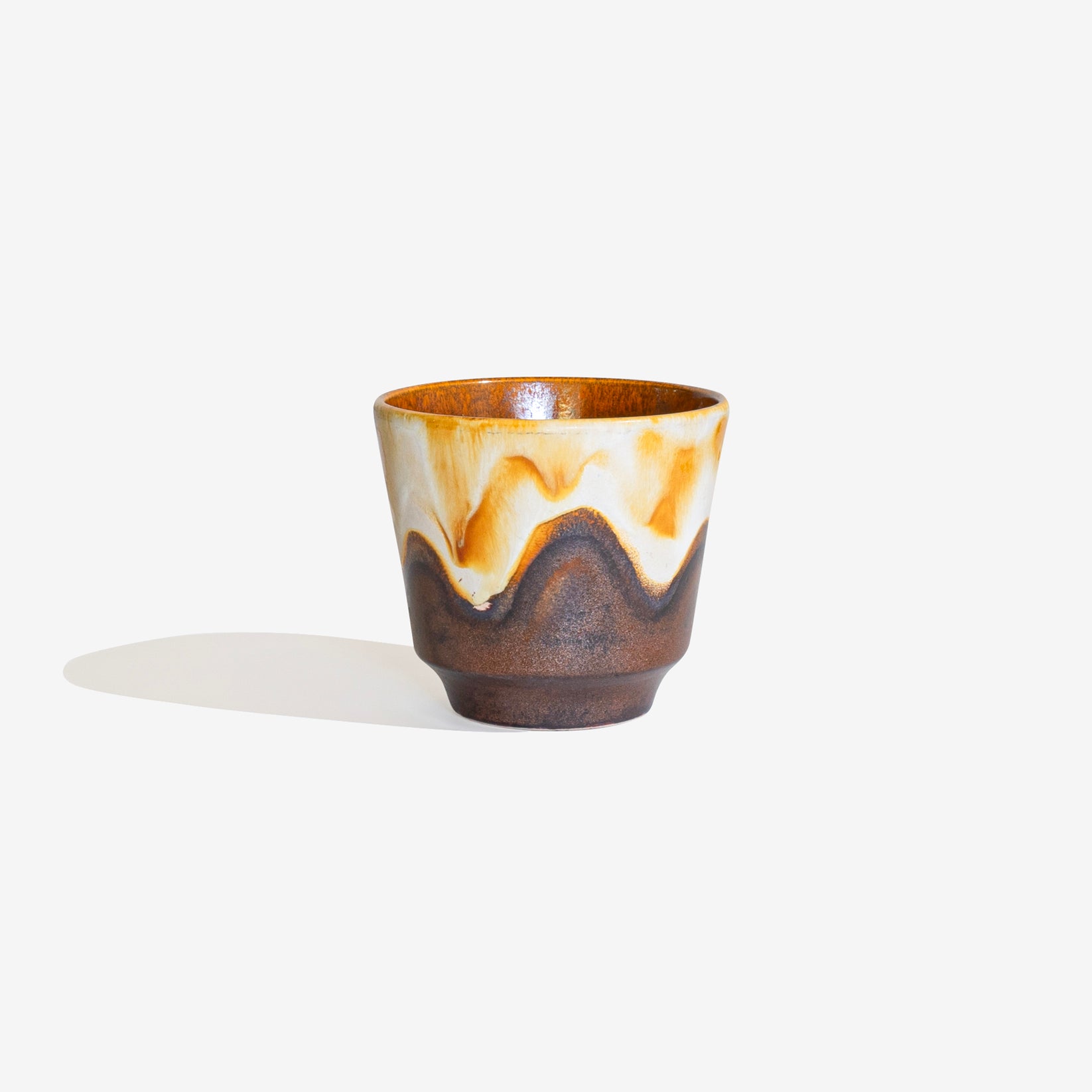 1950年代から1970年代にかけて主に旧西ドイツで製造された「Fat Lava」と呼ばれる陶器製アート。Fat Lava を直訳すると「Fat=肥えた」「Lava=溶岩」。釉薬がまるで溶岩にように溶け出て固まったようなテクスチャーが特徴の陶器製品です。第二次世界大戦後、旧西ドイツでは「West German Art Pottery」と呼ばれる芸術性を取り入れた陶器製品を積極的に生産する動きがあり、その流れで生まれたのが「Fat Lava」です。Fat Lavaの多くは機械によってベースが作られ、手作業によって釉薬を塗る作業が行われていました。全盛期には、100を超える陶器製造会社がさまざまなデザイナーとともに製品を作り、各社が釉薬の種類や塗り方を変え特徴のある製品を生み出しました。