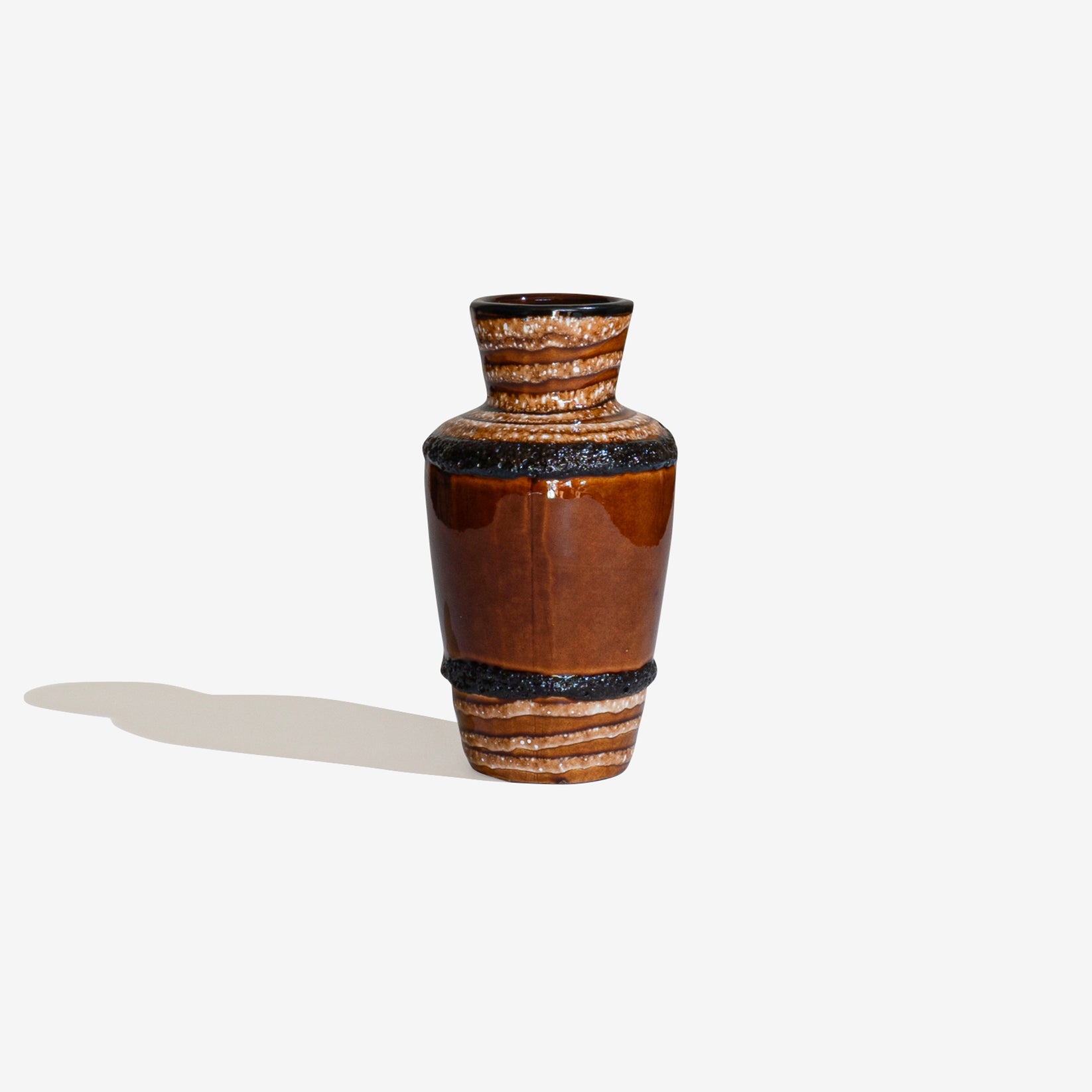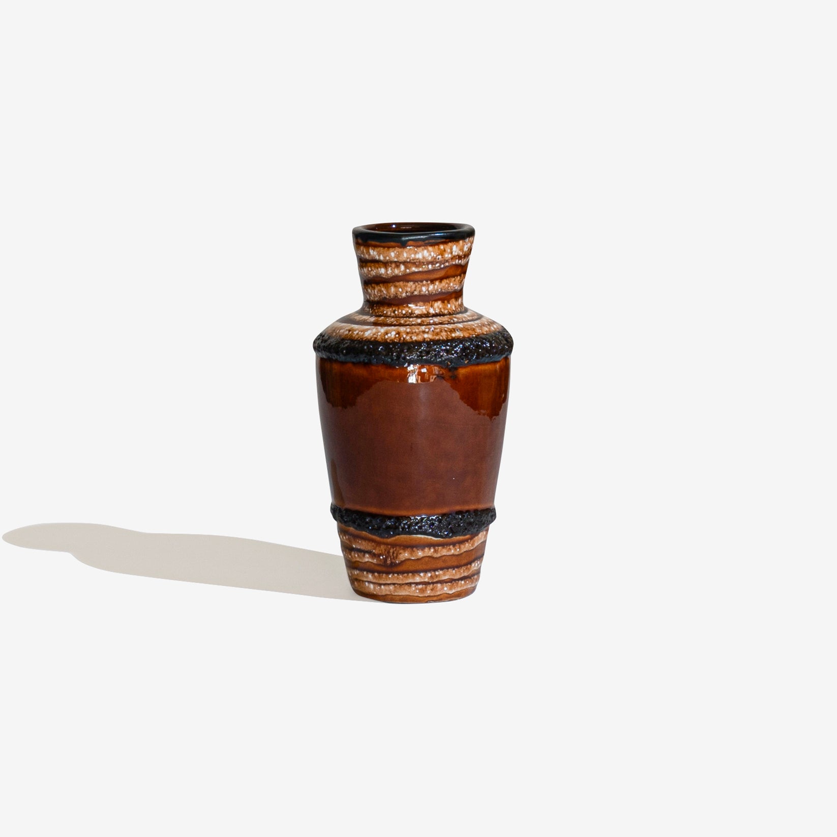 1950年代から1970年代にかけて主に旧西ドイツで製造された「Fat Lava」と呼ばれる陶器製アート。Fat Lava を直訳すると「Fat=肥えた」「Lava=溶岩」。釉薬がまるで溶岩にように溶け出て固まったようなテクスチャーが特徴の陶器製品です。第二次世界大戦後、旧西ドイツでは「West German Art Pottery」と呼ばれる芸術性を取り入れた陶器製品を積極的に生産する動きがあり、その流れで生まれたのが「Fat Lava」です。