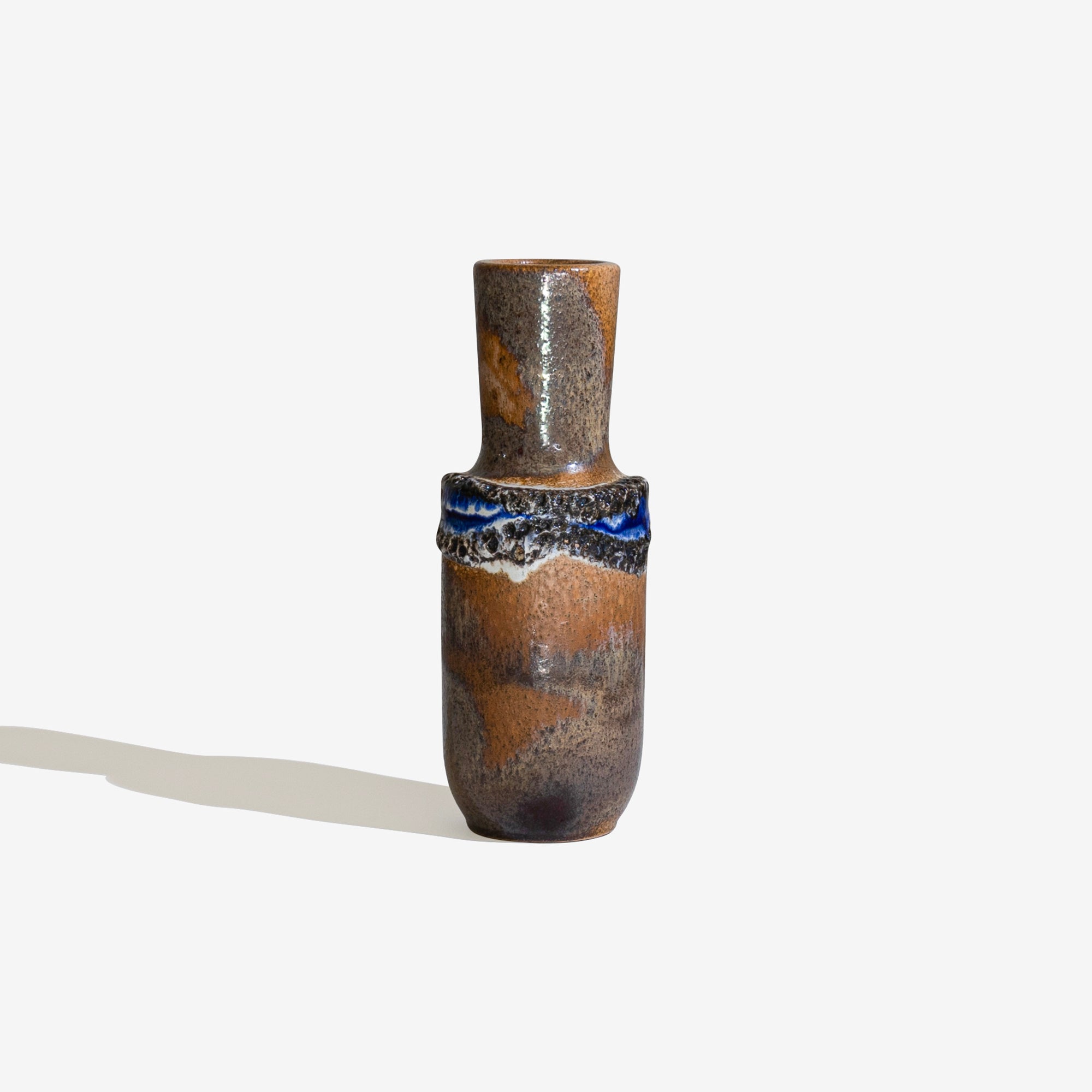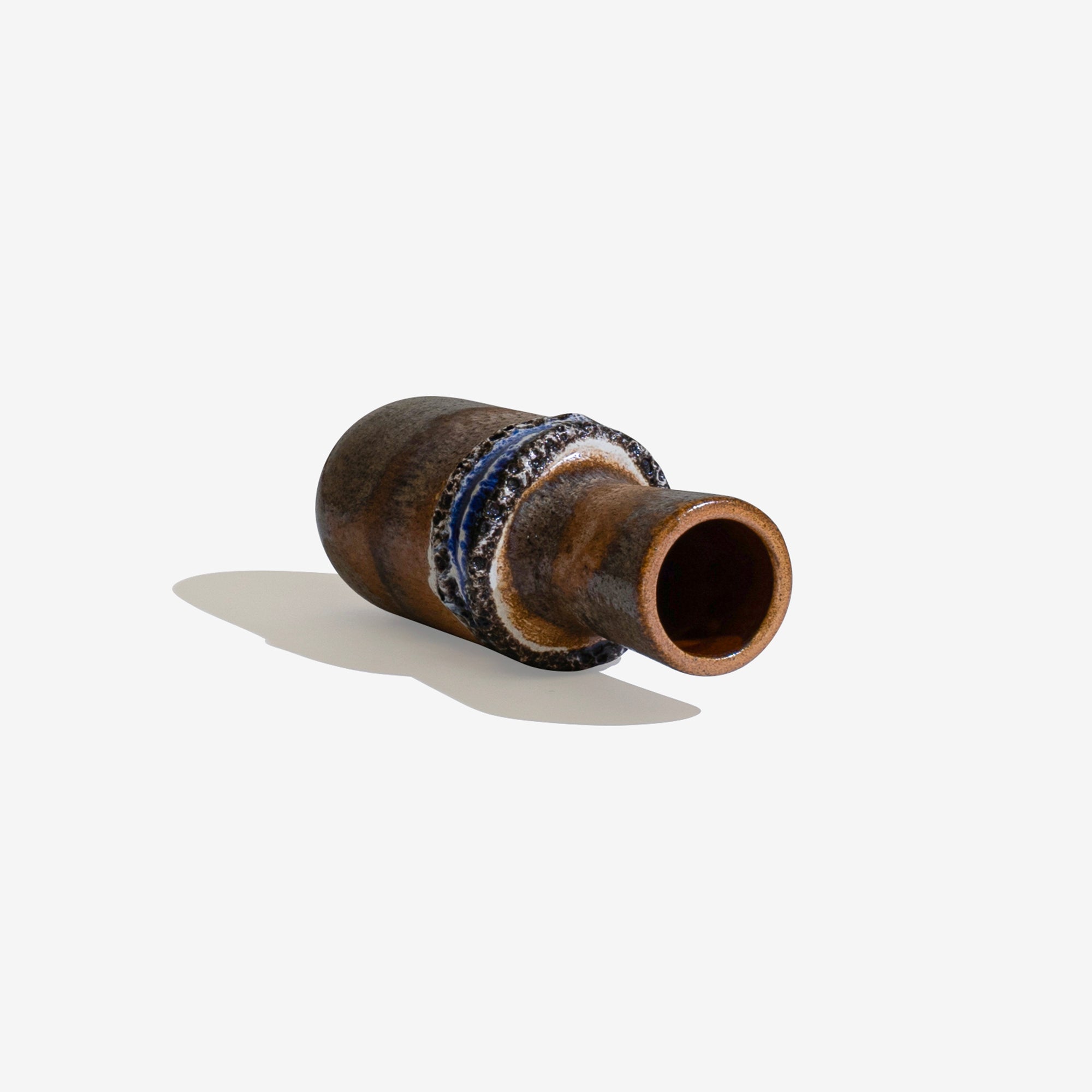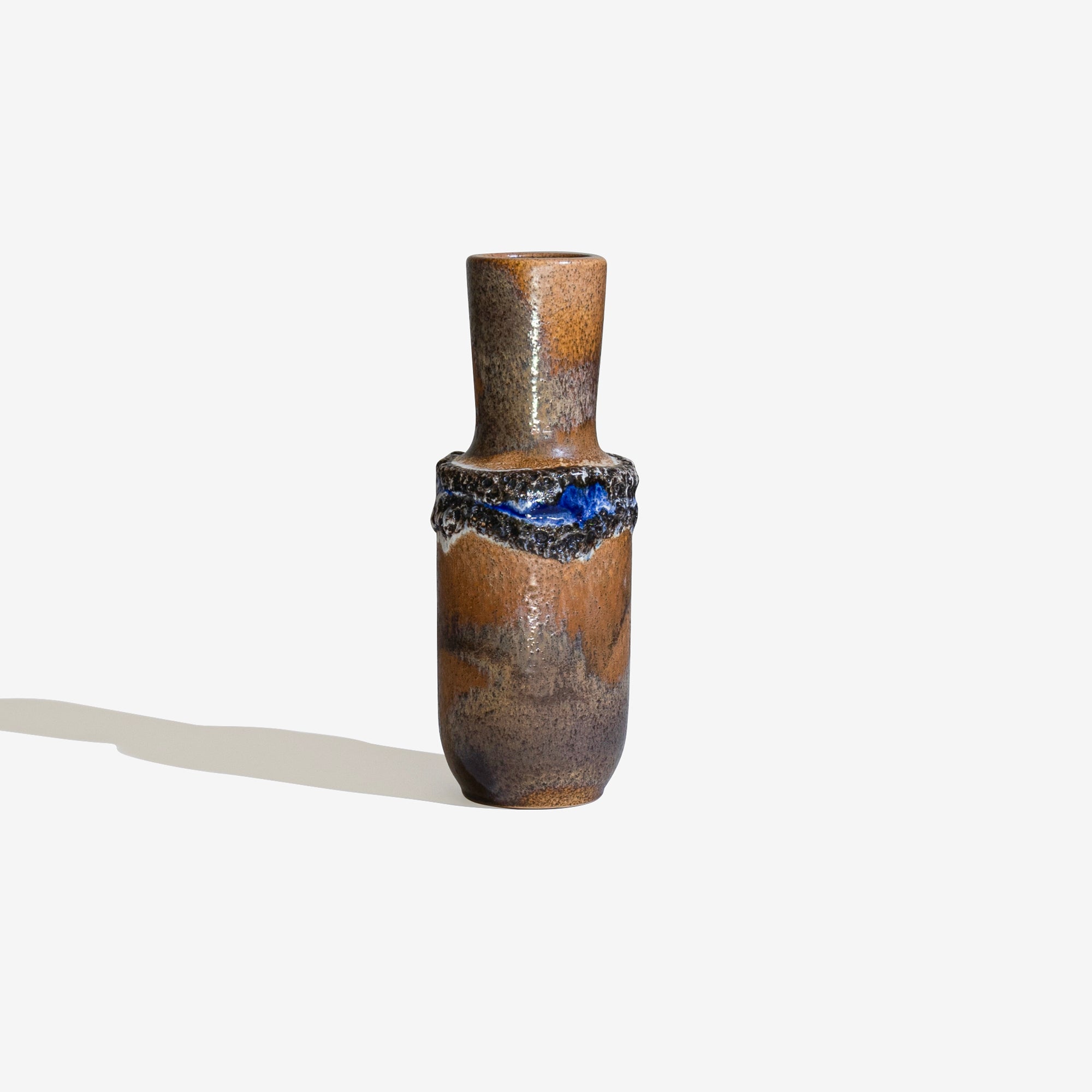 1960年代にSTEULER KERAMIK社によって作られたフラワーベース。深みのあるブラウンの釉薬に、流れる溶岩を思わせる白黒の泡のような釉薬とブルーの色味がアクセントになっています。