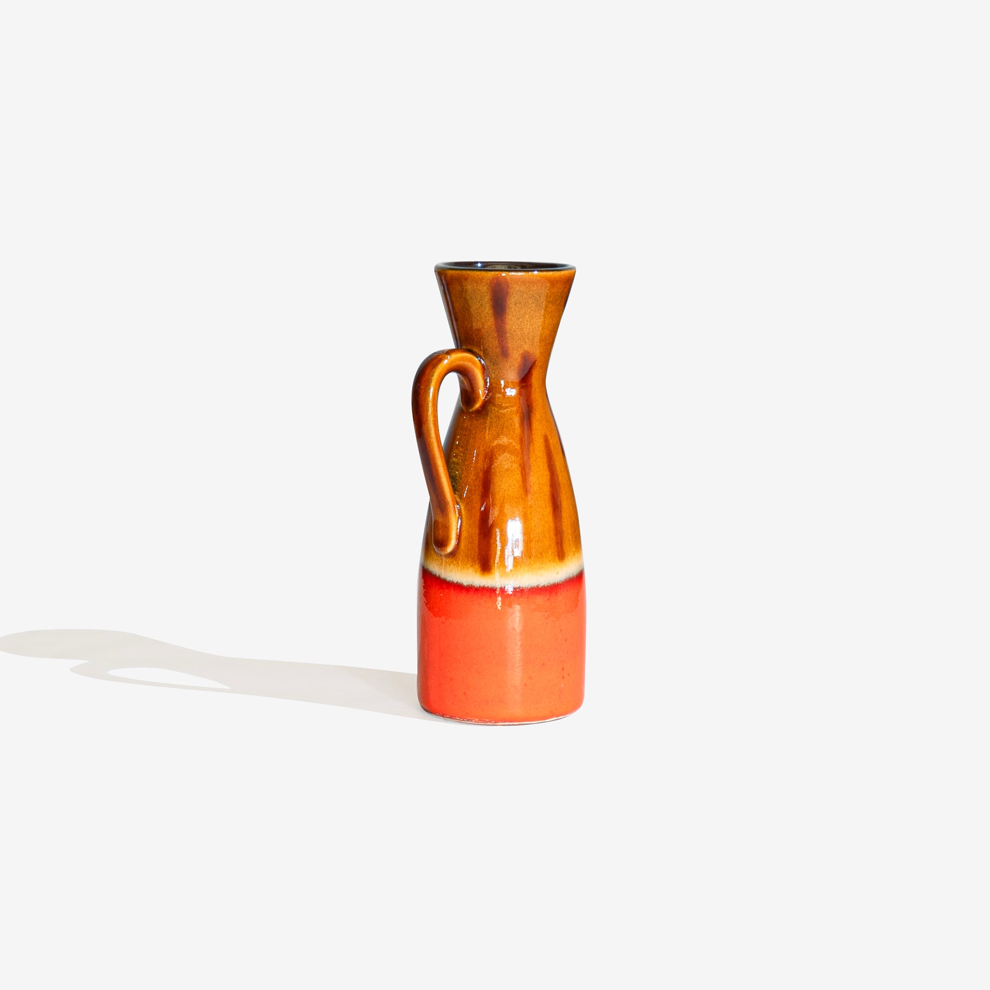 CARSTENS TONNIESHOF 社が1960年代に製造した Fav Lavaのフラワーベース。う。クラシックなハンドルの形状と、深みのあるブラウンの釉薬、そして鮮やかなオレンジ色の底が特徴的な花瓶です。