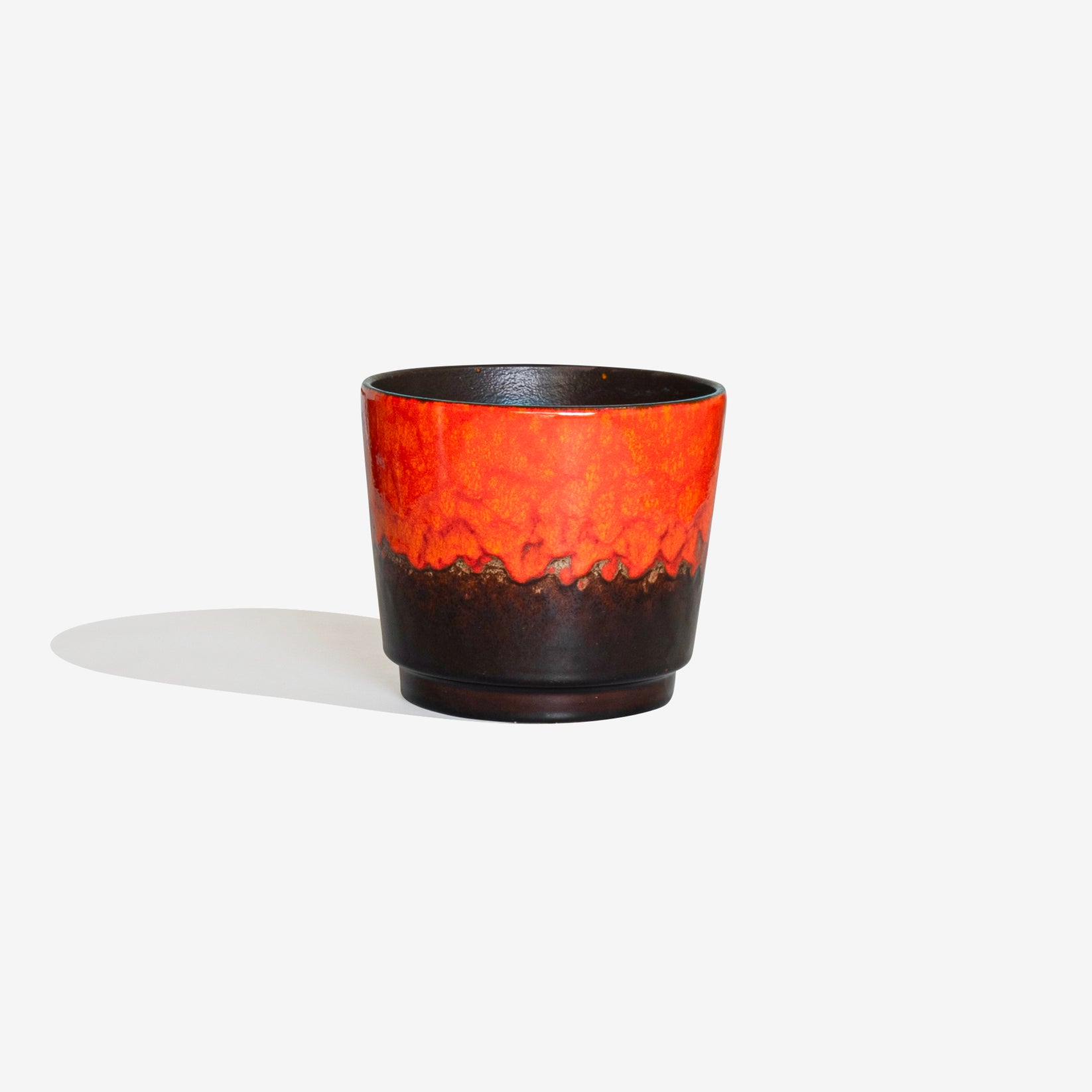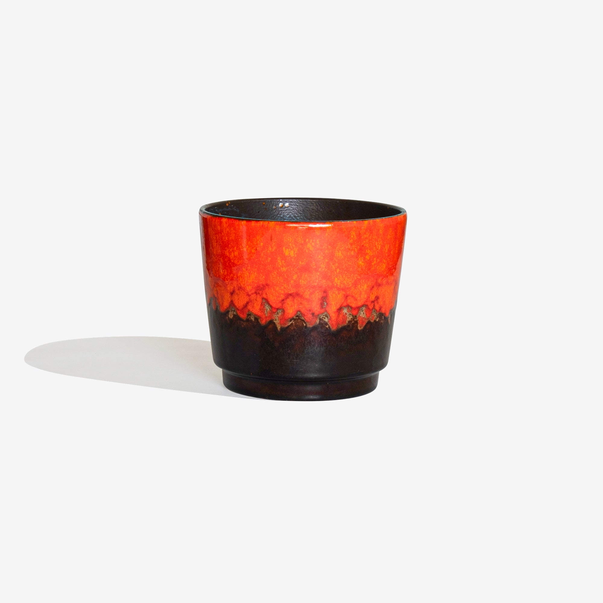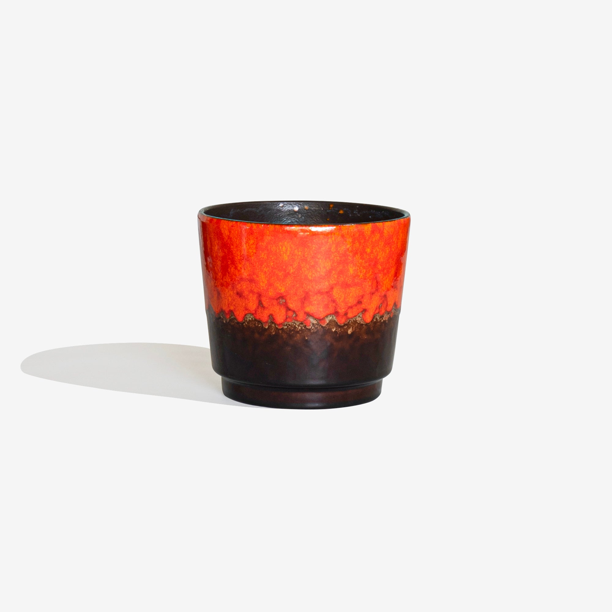 1970年代にSCHEURICH社にて作られた Fav Lavaのフラワーポット。光沢のあるオレンジとアースブラウンの釉薬の魅力的な組み合わせが特徴です。