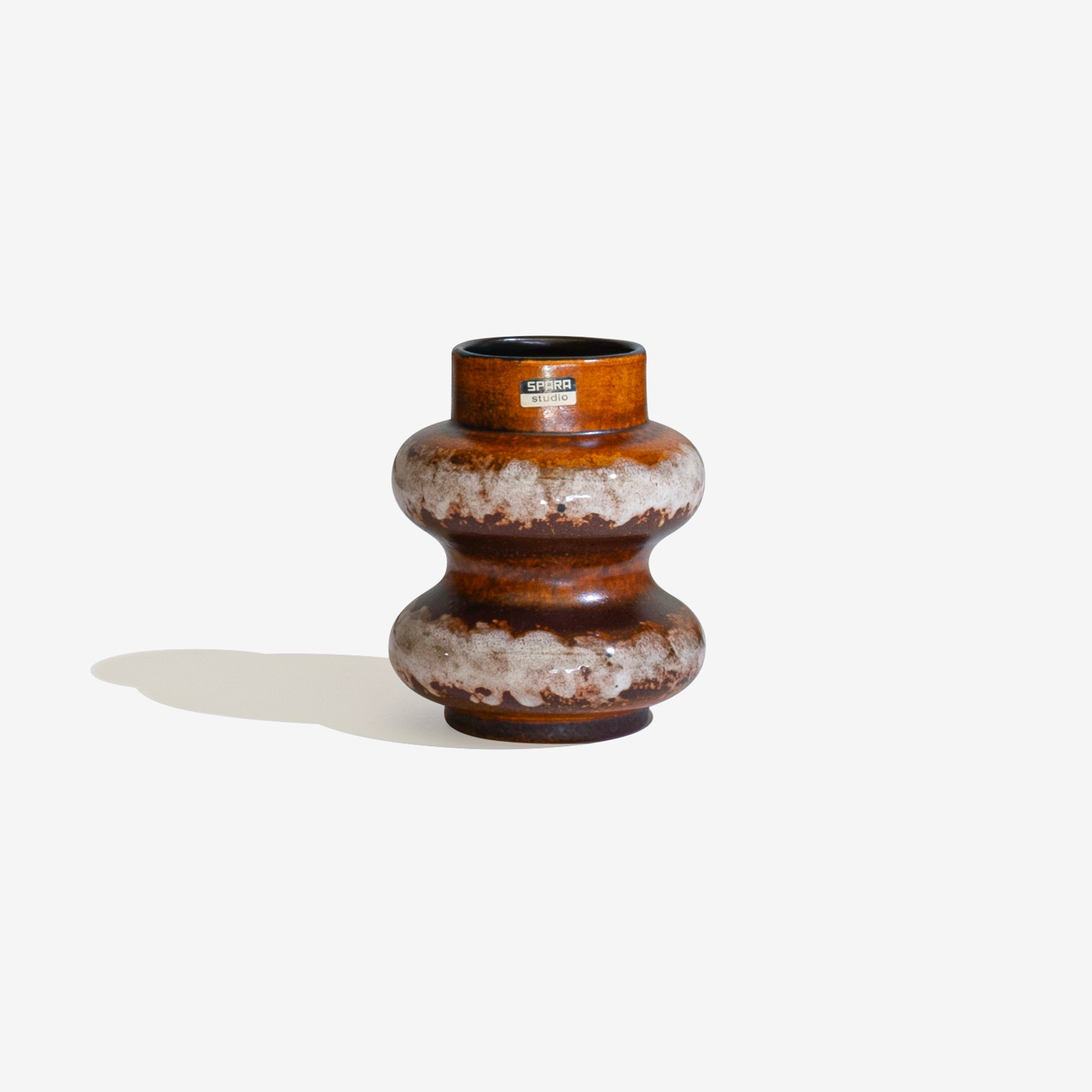 1970年代にSPARA KERAMIK社にて作られた Fav Lavaのフラワーベース。白とブラウンの釉薬のバランスがよく、印象的なフォルムの花瓶です。