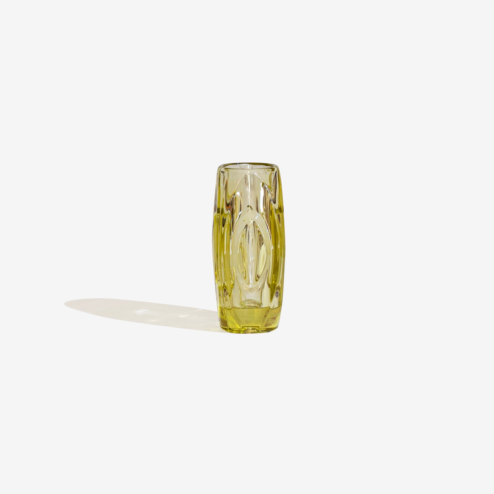 商品説明チェコのロシツェ・ガラス・ワークス社製のガラス製の花瓶。1955年製のRudolf Schrötter (ルドルフ・シュレッター)によるデザインです。