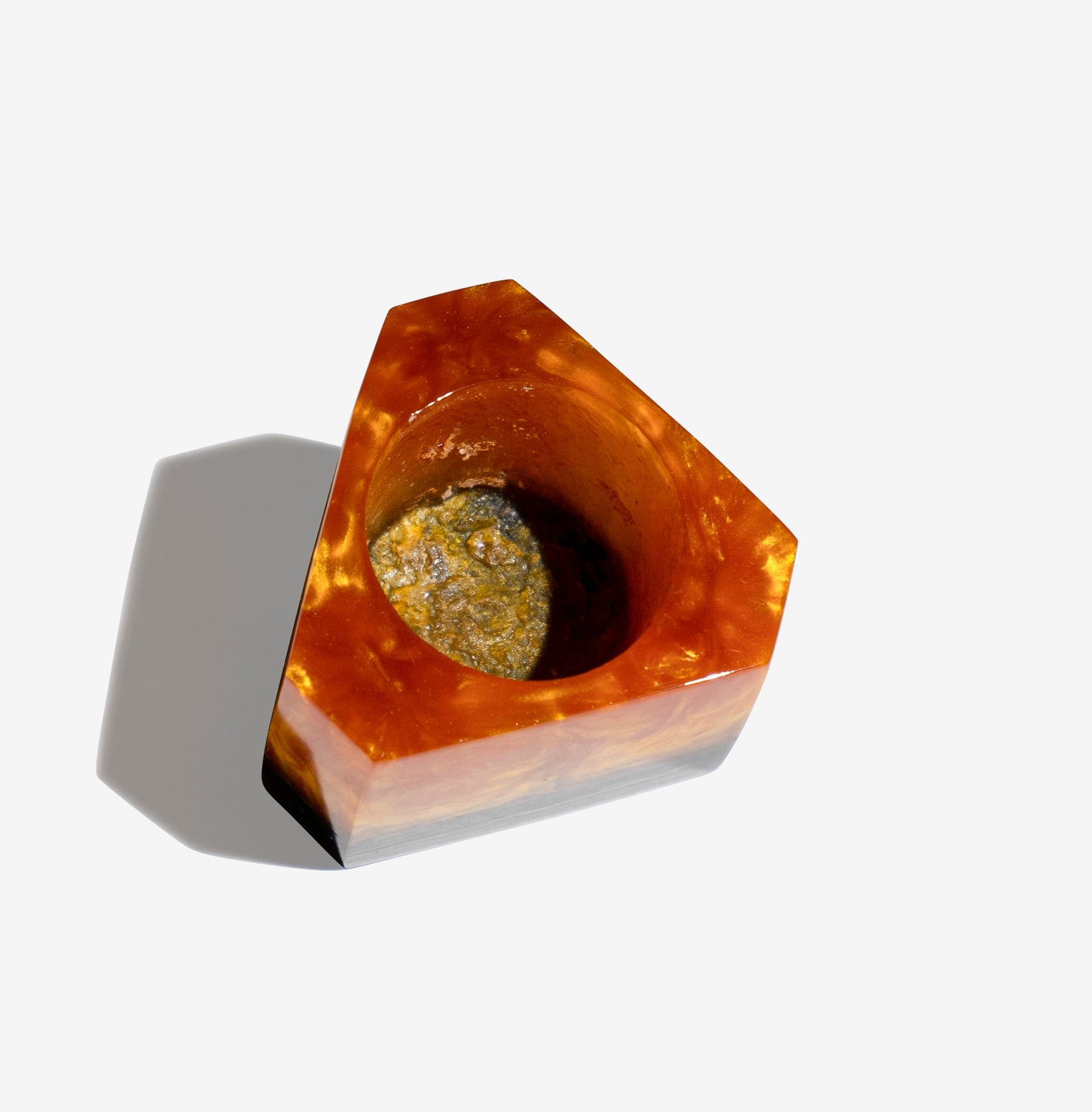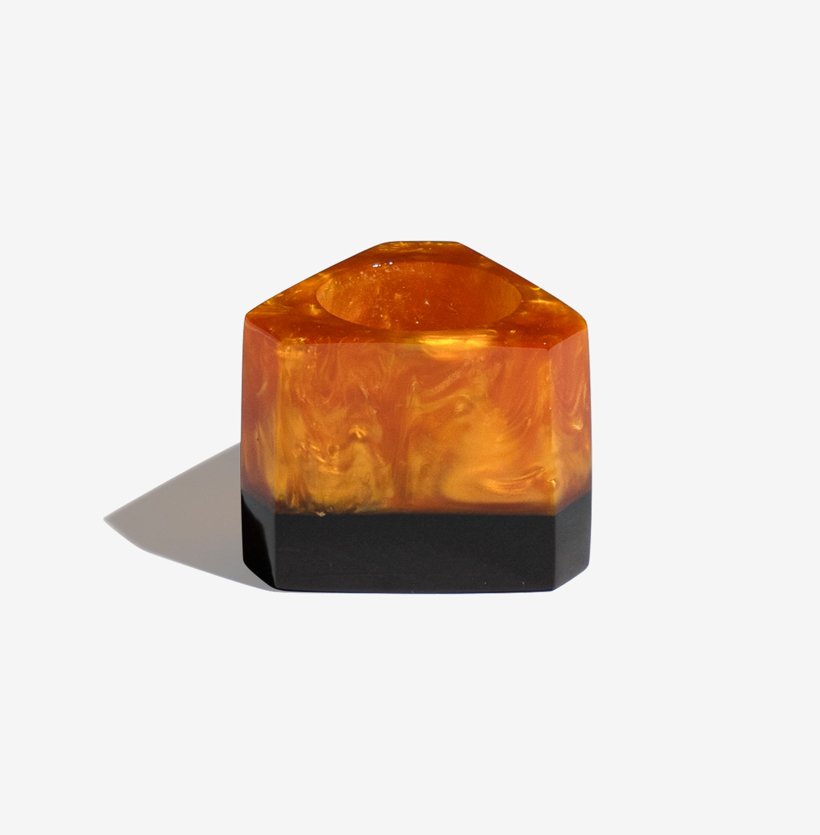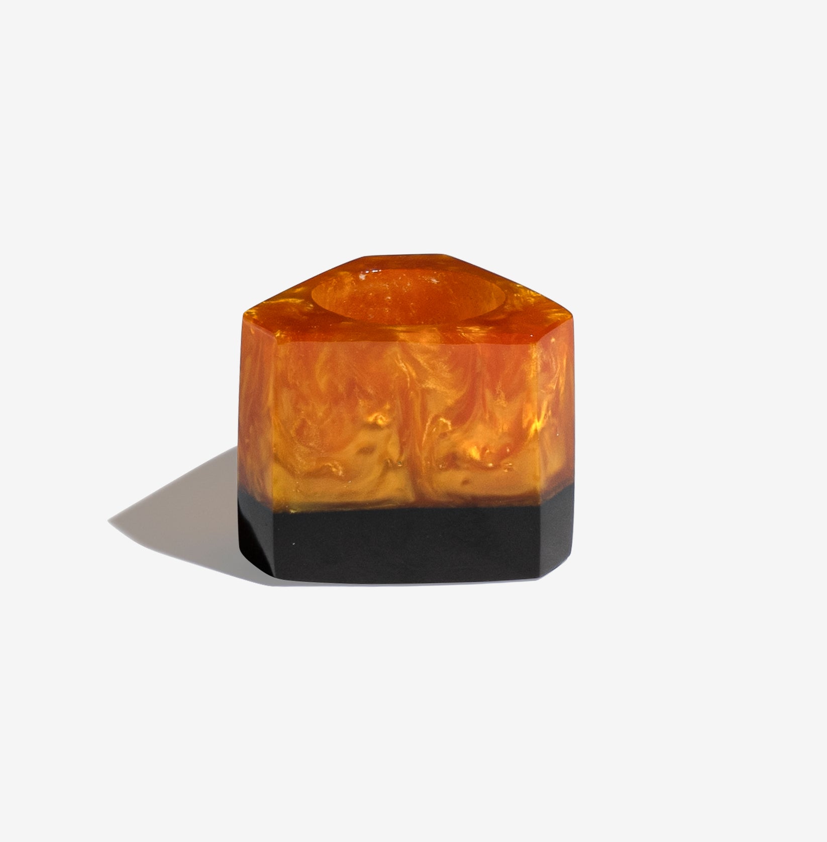 黒と黄みがかったオレンジの組み合わせが美しく、どんな空間にも素敵なアクセントを加えてくれるアイテムです。大理石のような柔らかな模様も特徴です。