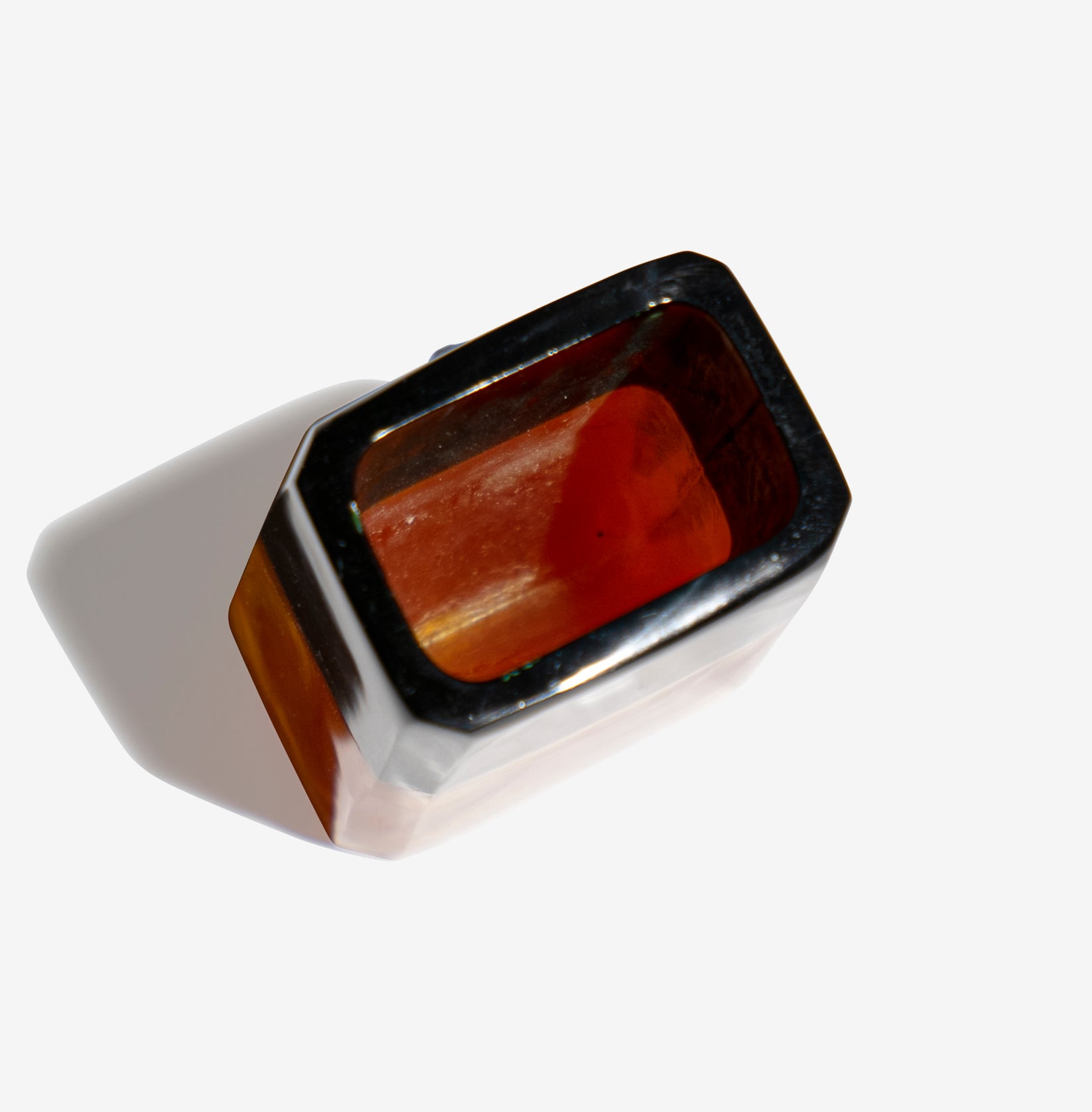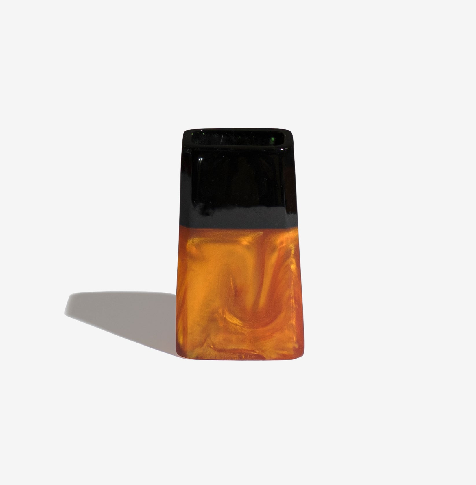 黒と黄みがかったオレンジの組み合わせが美しく、どんな空間にも素敵なアクセントを加えてくれるアイテムです。大理石のような柔らかな模様も特徴です。