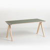 天板のリノリウムはスイスのForbo社製のものを採用しており、9色から選択可能です。Forbo社製のリノリウムは天然素材で作られており、マットな素材感で抗菌・抗ウイルス性の高い素材です。天板はパークサイドマーケット自社工場にて製作しますので、小口の加工などの細かな仕上がりもお選びいただけます。
