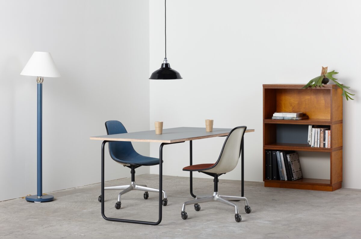ベーシックなデザインなので、どんなお部屋でも相性がよく、オフィスなどの空間に並べて置いてもすっきりとした印象になります。脚がL字になっているのでデスク下にキャビネットを入れることもできます。