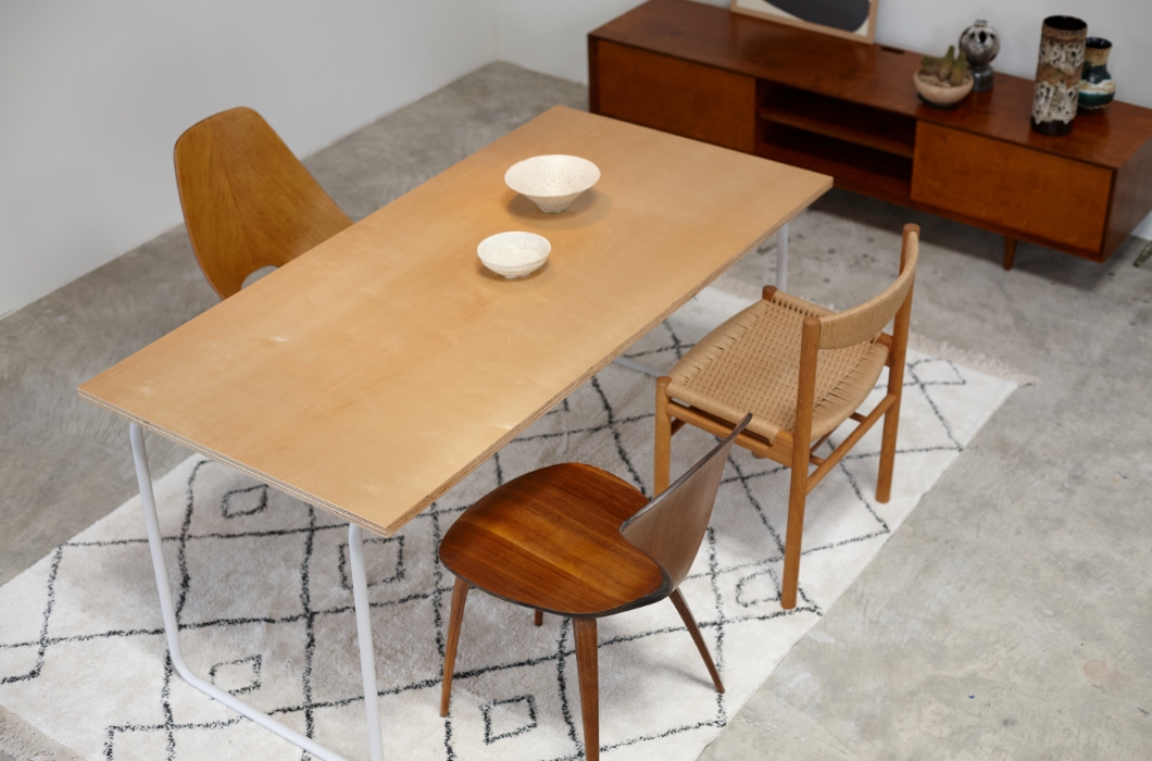 ブロイヤーやトーネットを彷彿させるデザインで、在りそうで無いアイテムです。パイプ曲げ加工の曲線のフォルムが柔らかい雰囲気を感じさせ、デスクだけでなくダイニングテーブルとしても空間のアクセントになります。