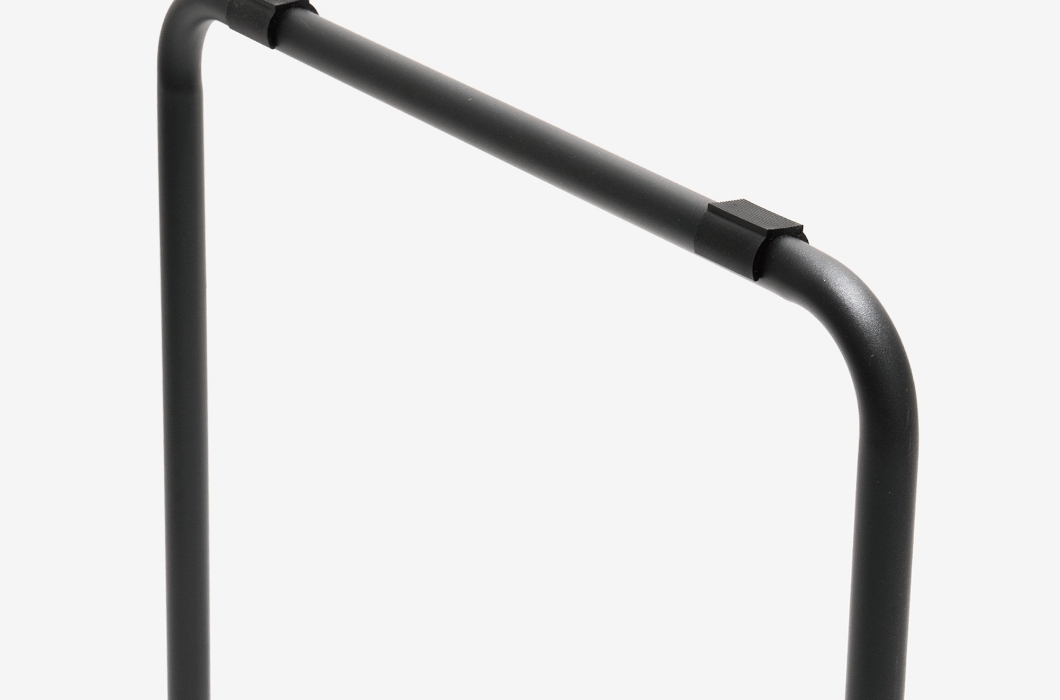 在りそうで無い、スチール製の丸パイプを折り曲げたブロイヤーやトーネットを彷彿させるデザインの脚です。パイプ曲げ加工の曲線のフォルムが、柔らかい雰囲気を感じさせます。脚は傷や錆に強い粉体塗装仕上げで、カラーは3色から選べます。