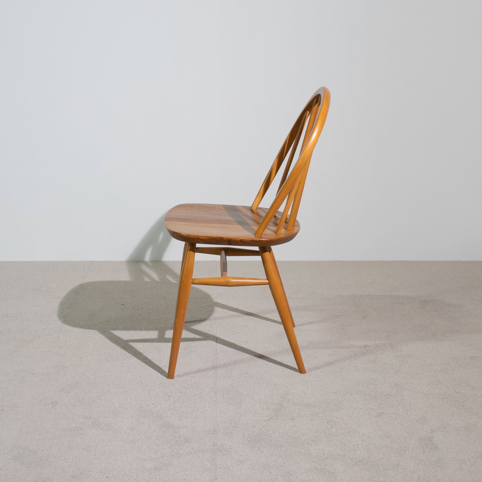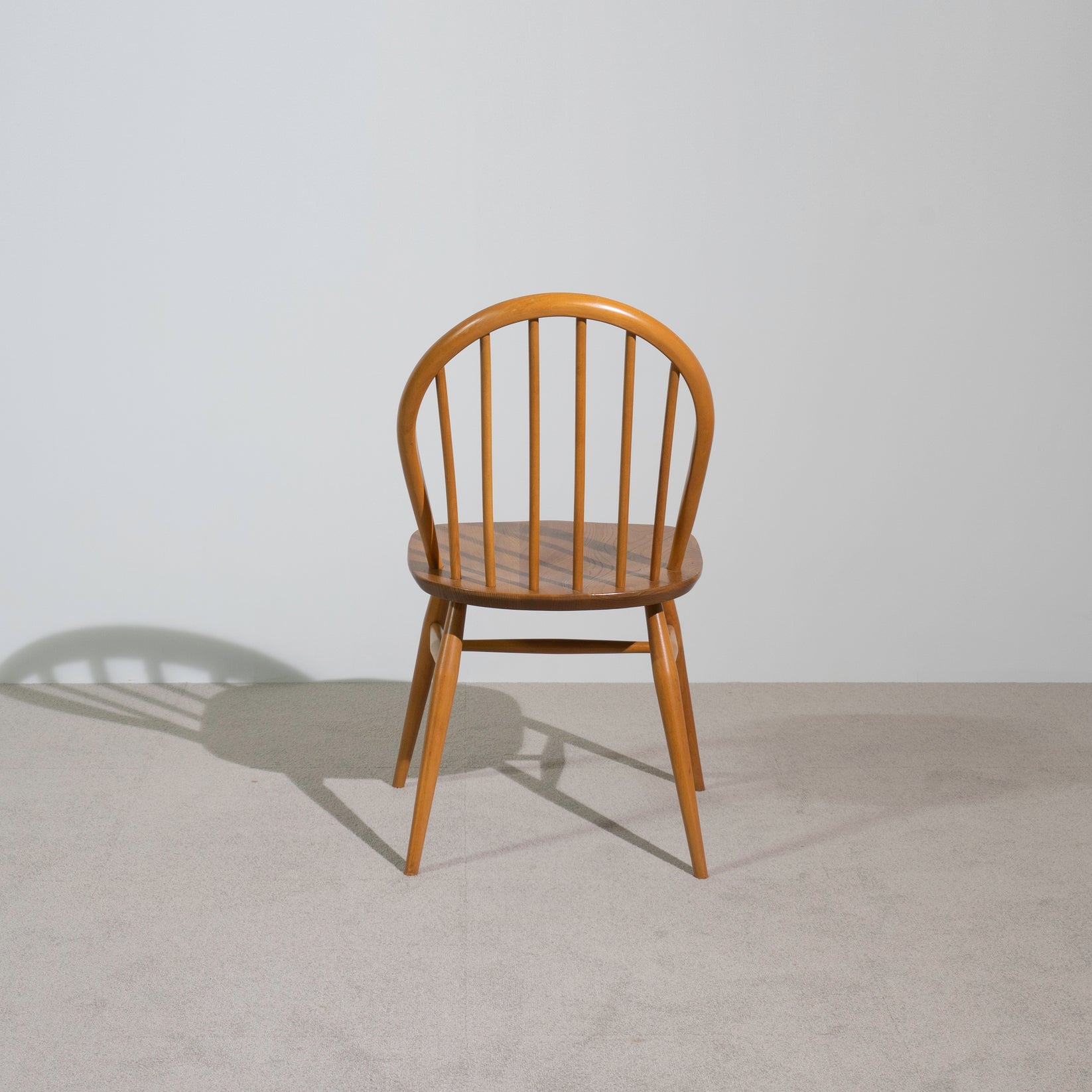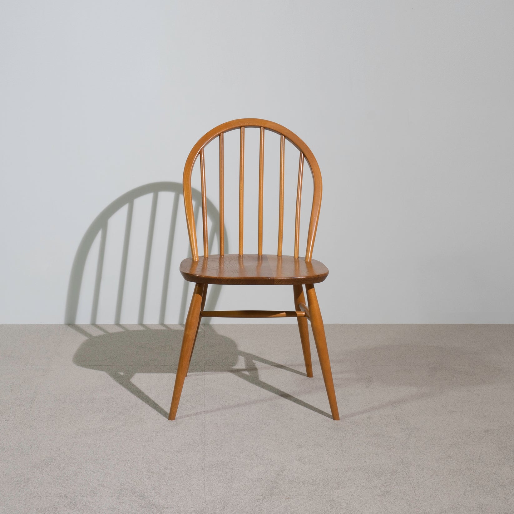 1920年にイギリスに創業したERCOL社のアイコンとも言える、定番のスタイリッシュなウィンザーチェアです。 釘を使用せず組み木のような作りになっています。フープバックチェアは背もたれのスピンドルは6本と4本のタイプがあり、こちらは6本タイプです。