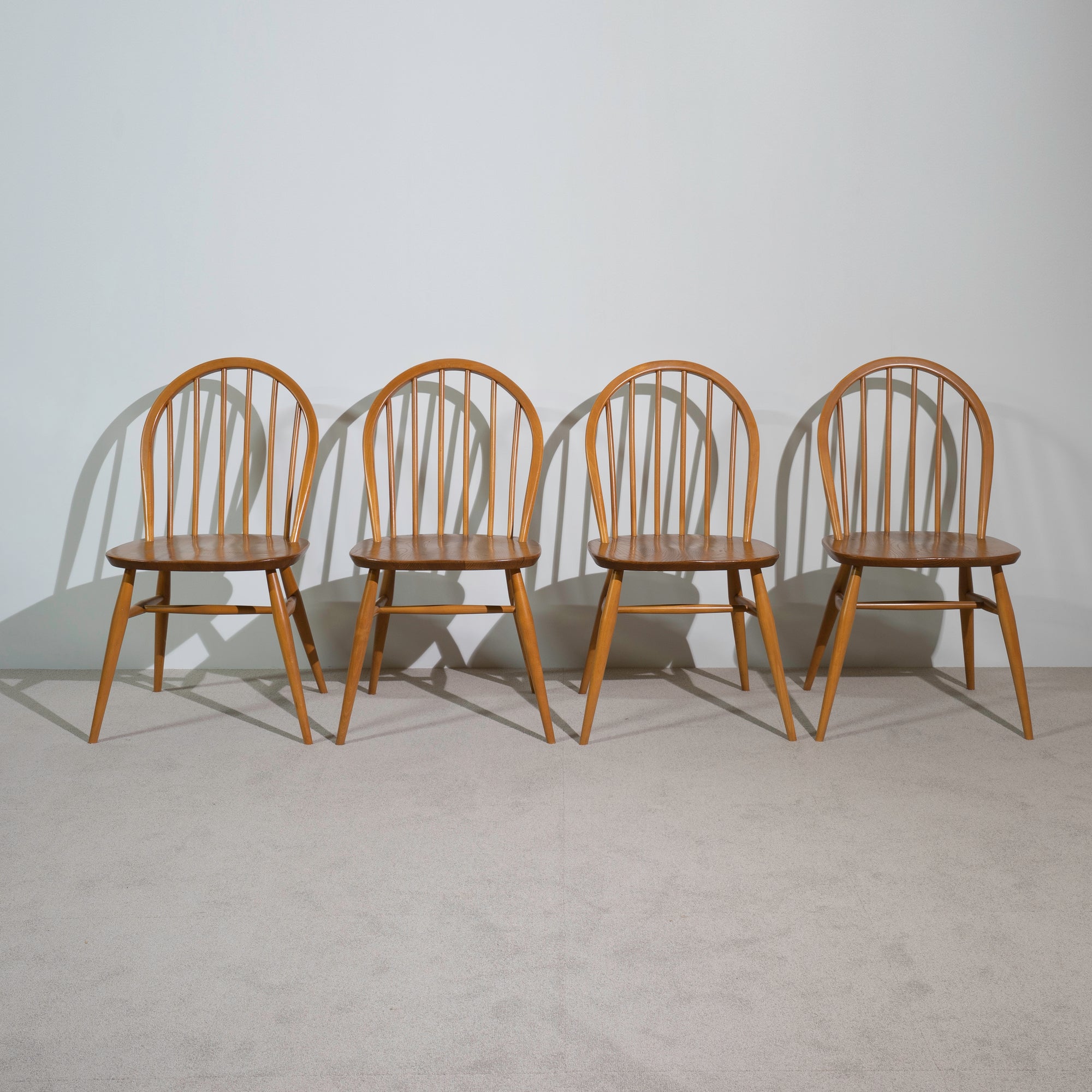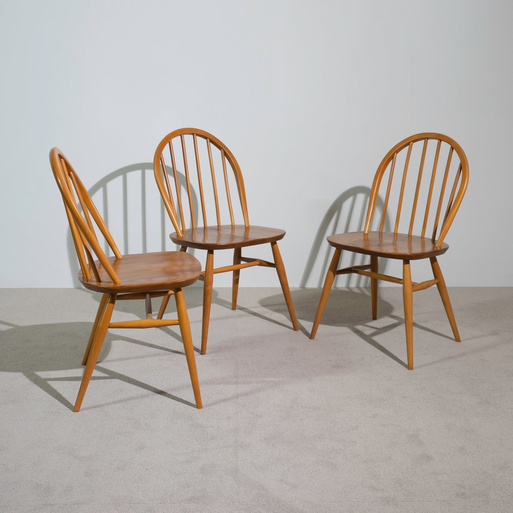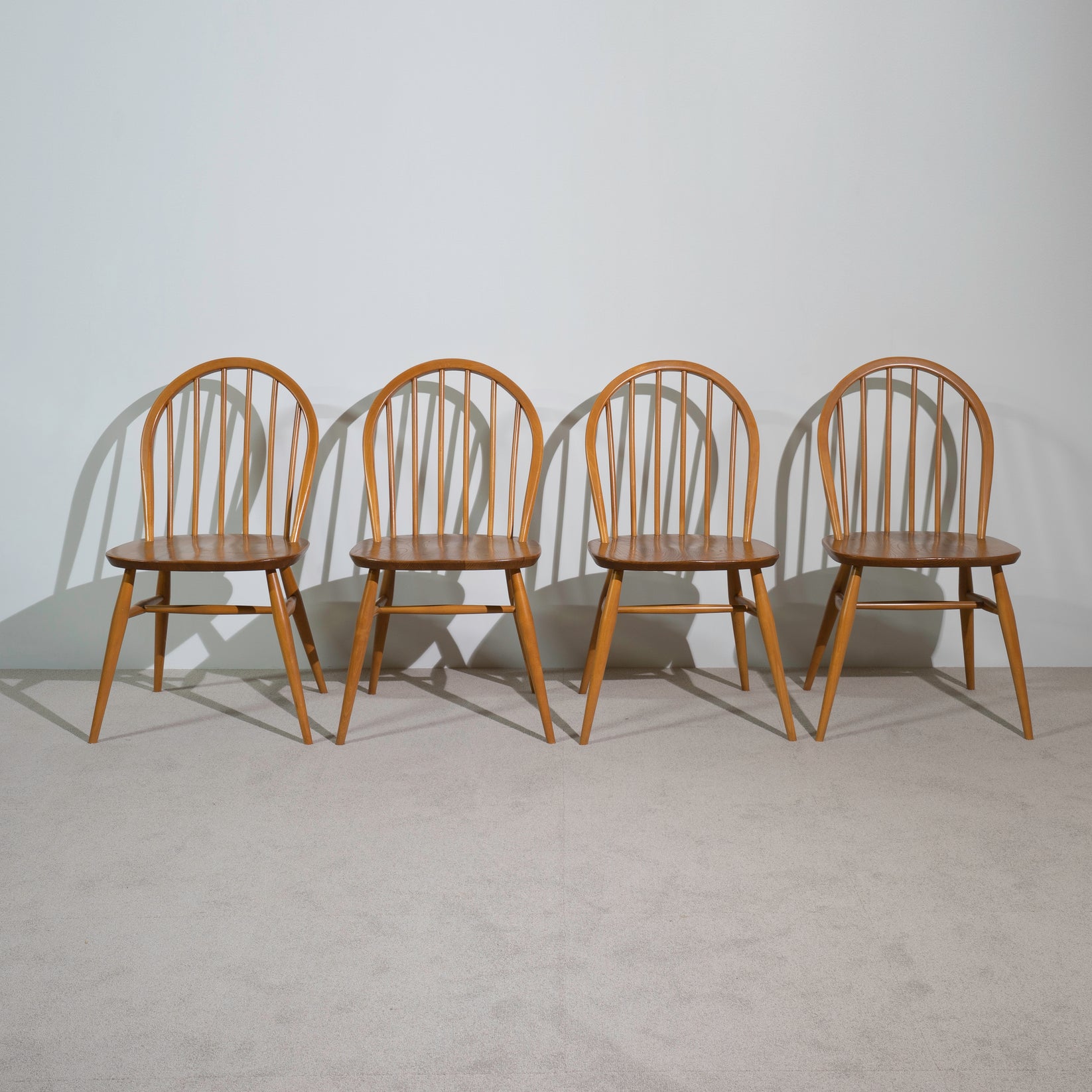 1920年にイギリスに創業したERCOL社のアイコンとも言える、定番のスタイリッシュなウィンザーチェアです。 釘を使用せず組み木のような作りになっています。フープバックチェアは背もたれのスピンドルは6本と4本のタイプがあり、こちらは6本タイプです。