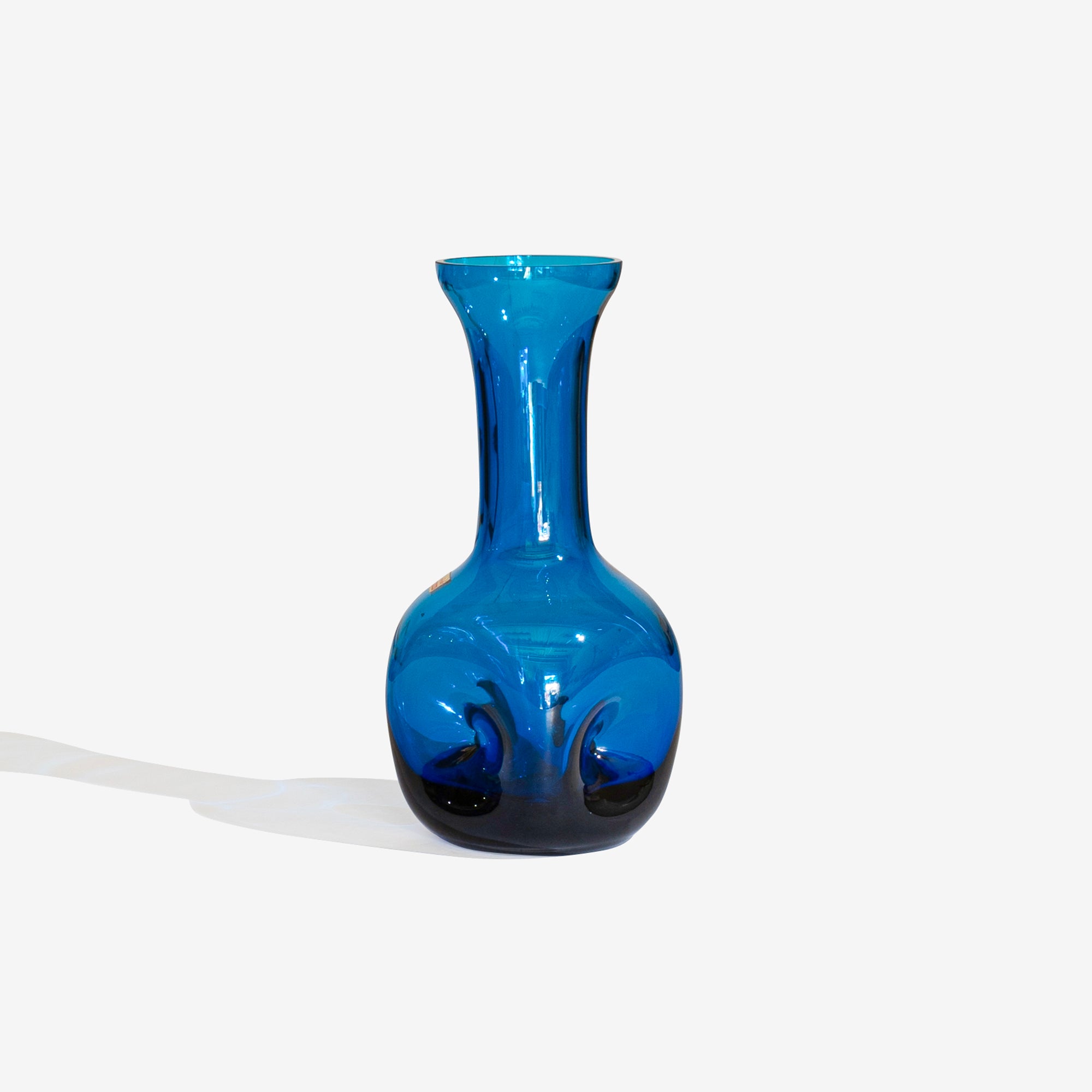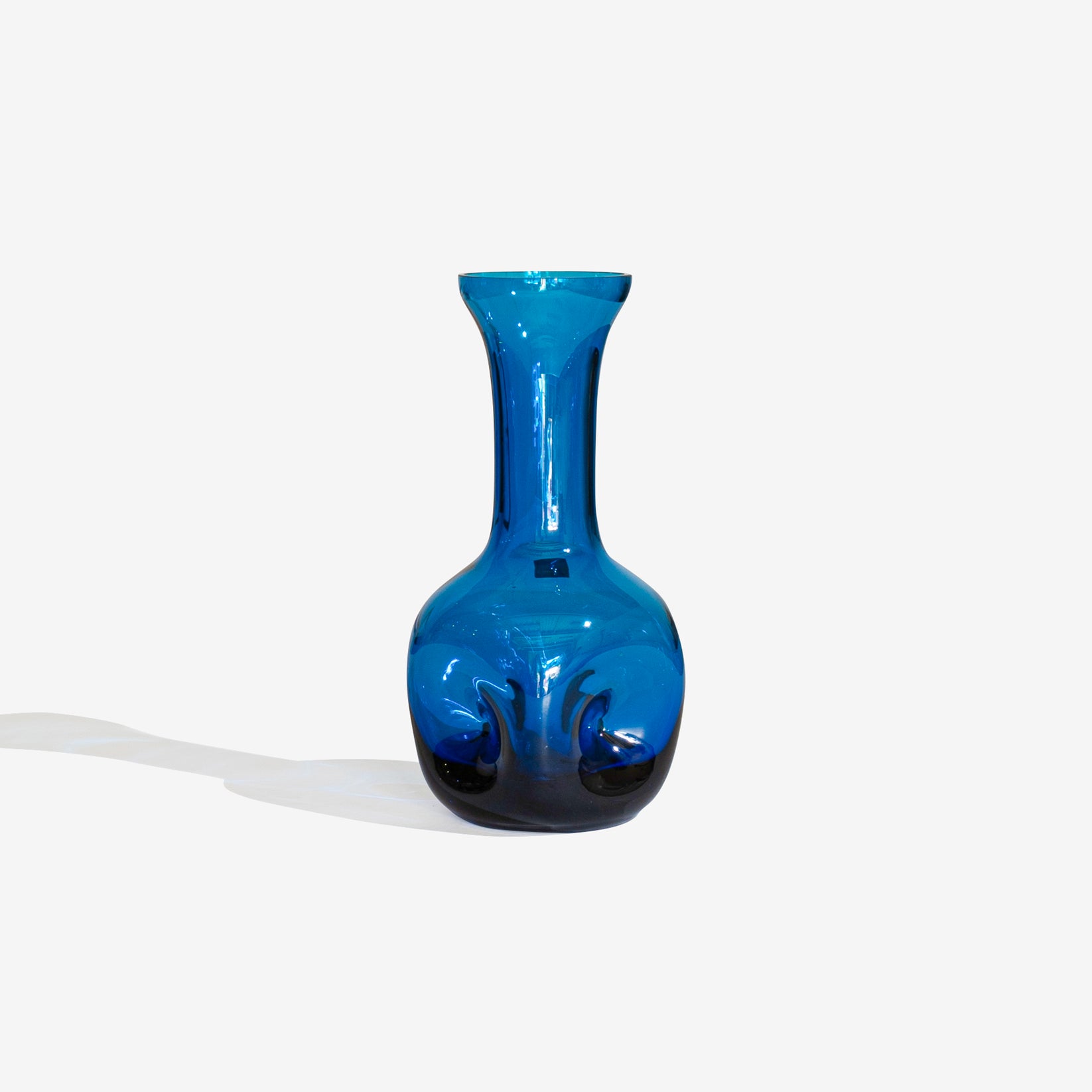 1960-70年代に西ドイツのガラスメーカーFRIEDRICH GLASS が製作した花瓶。深みのあるブルーが美しく、手吹きならではのフォルムが印象的です。オリジナルのステッカー付きです。