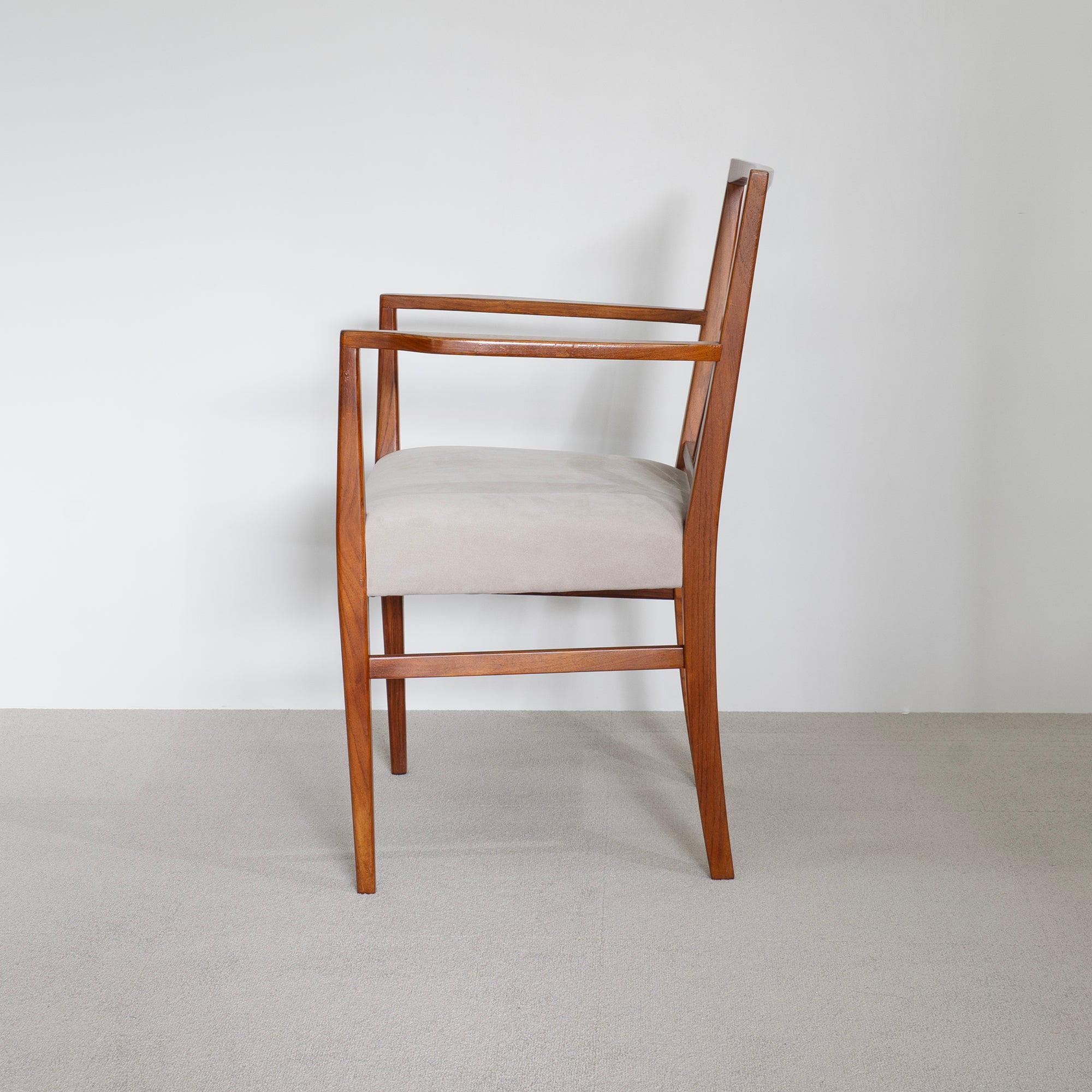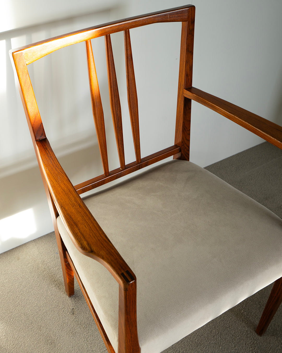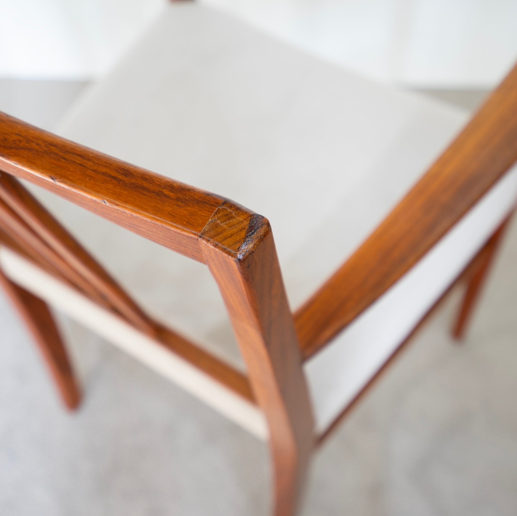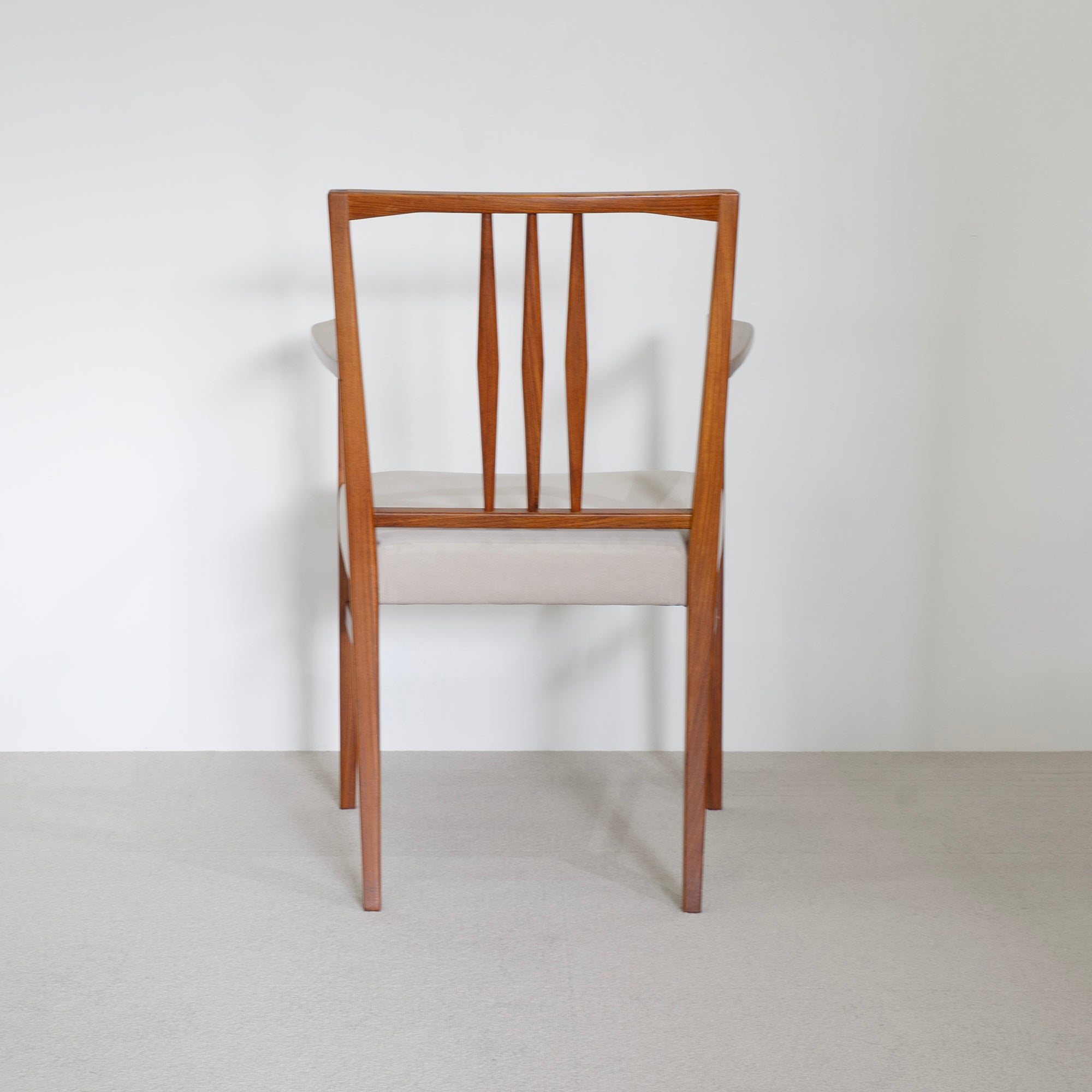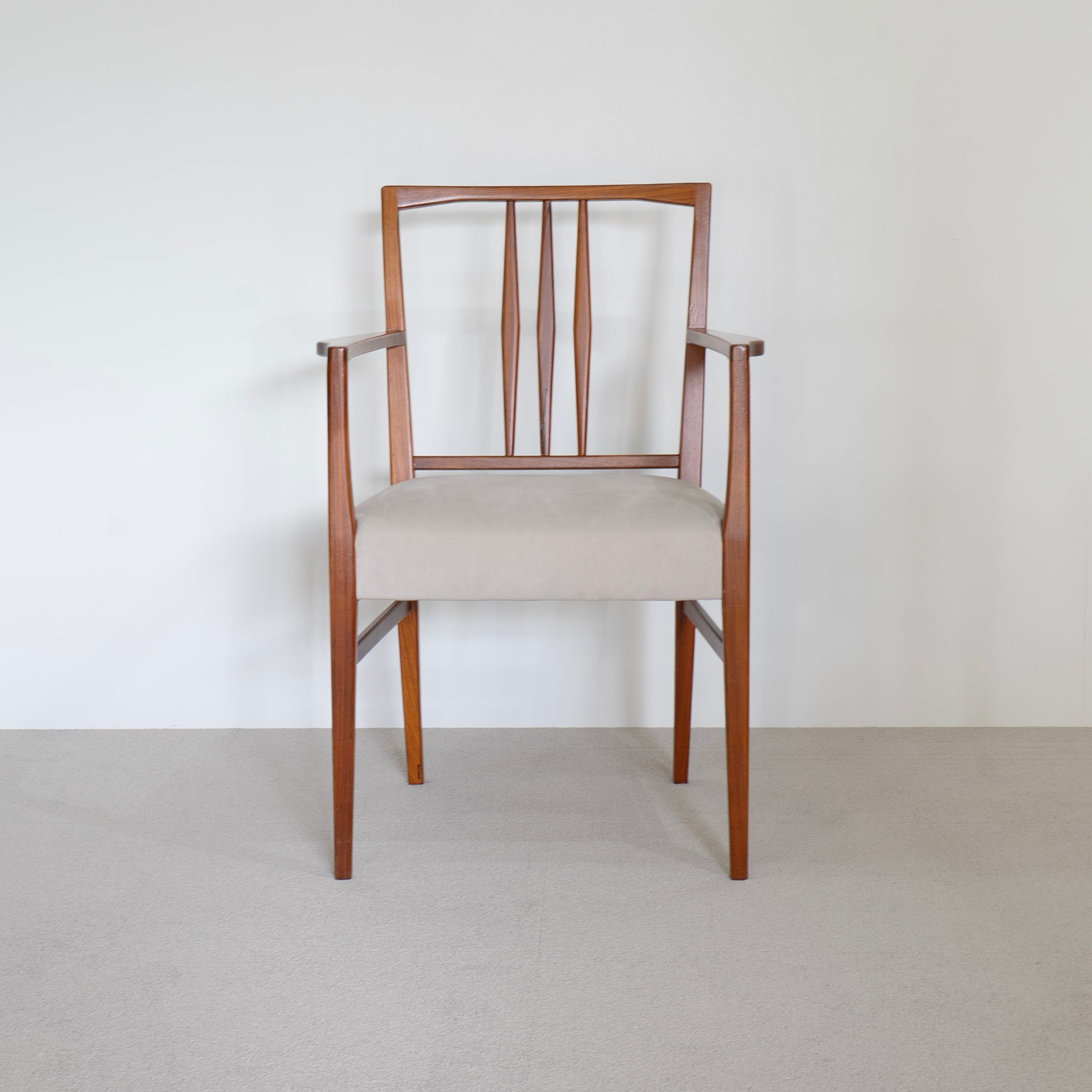 フレームにはチーク材が使用されおり、座面は広く座りやすいチェアです。シンプルなデザインですが、アームや背もたれなど技巧が凝らされています。時代を超越したこのデザインは長年にわたり製造されていました。アーム付き、アーム無しと2種ご用意があります。