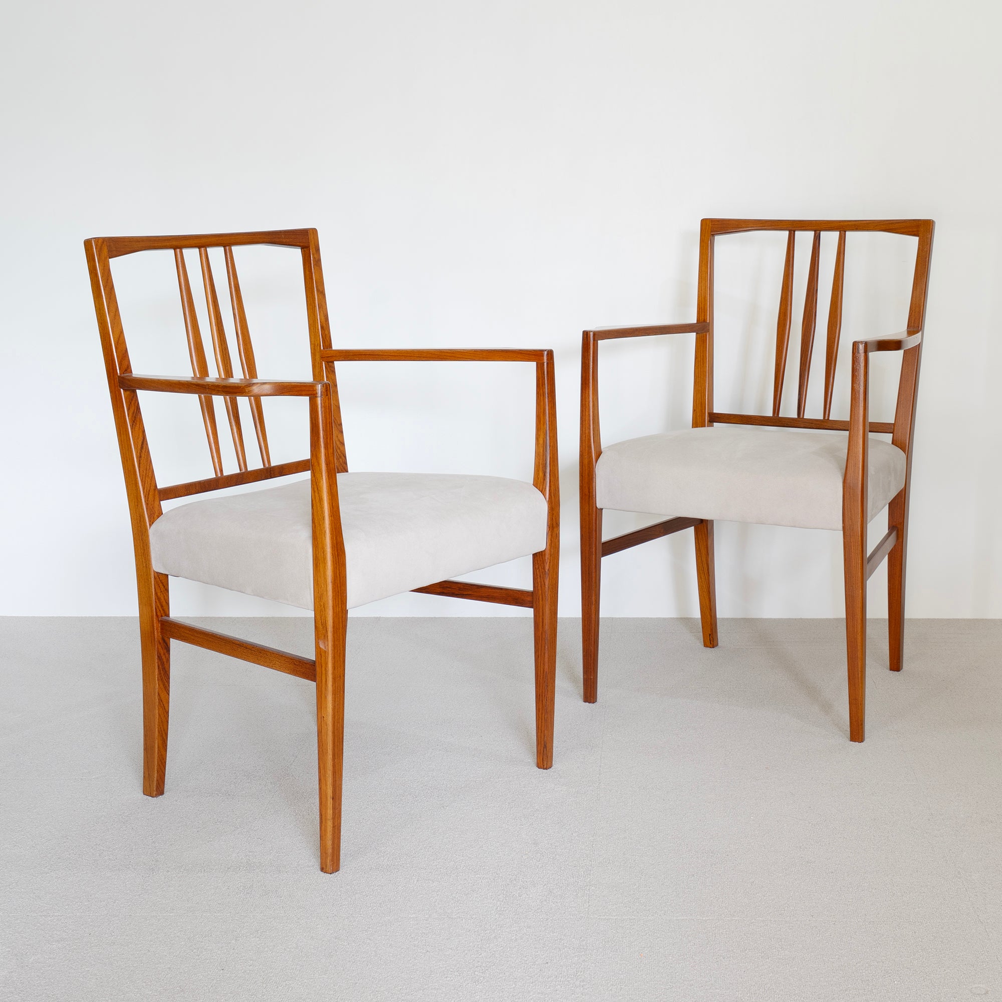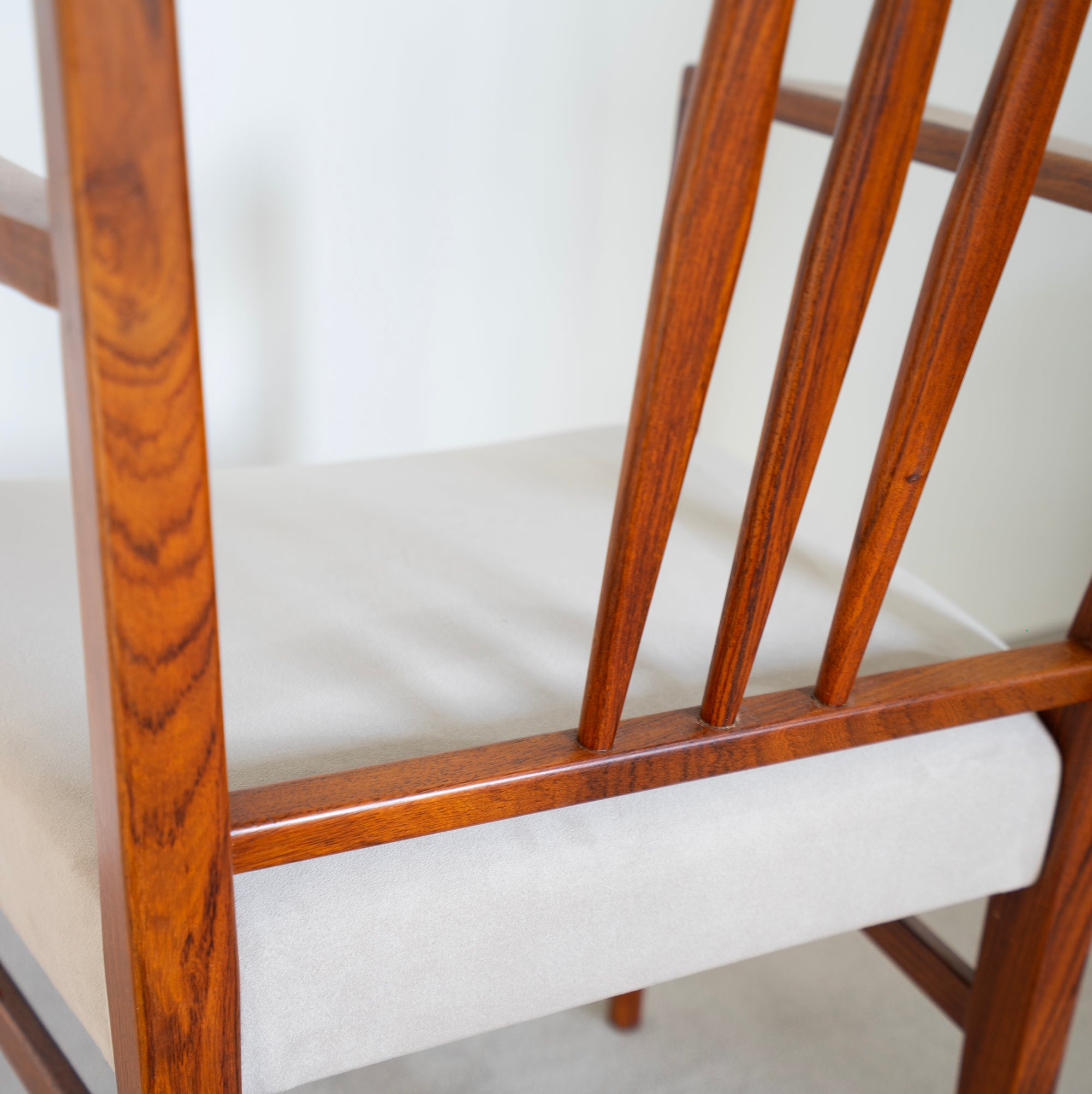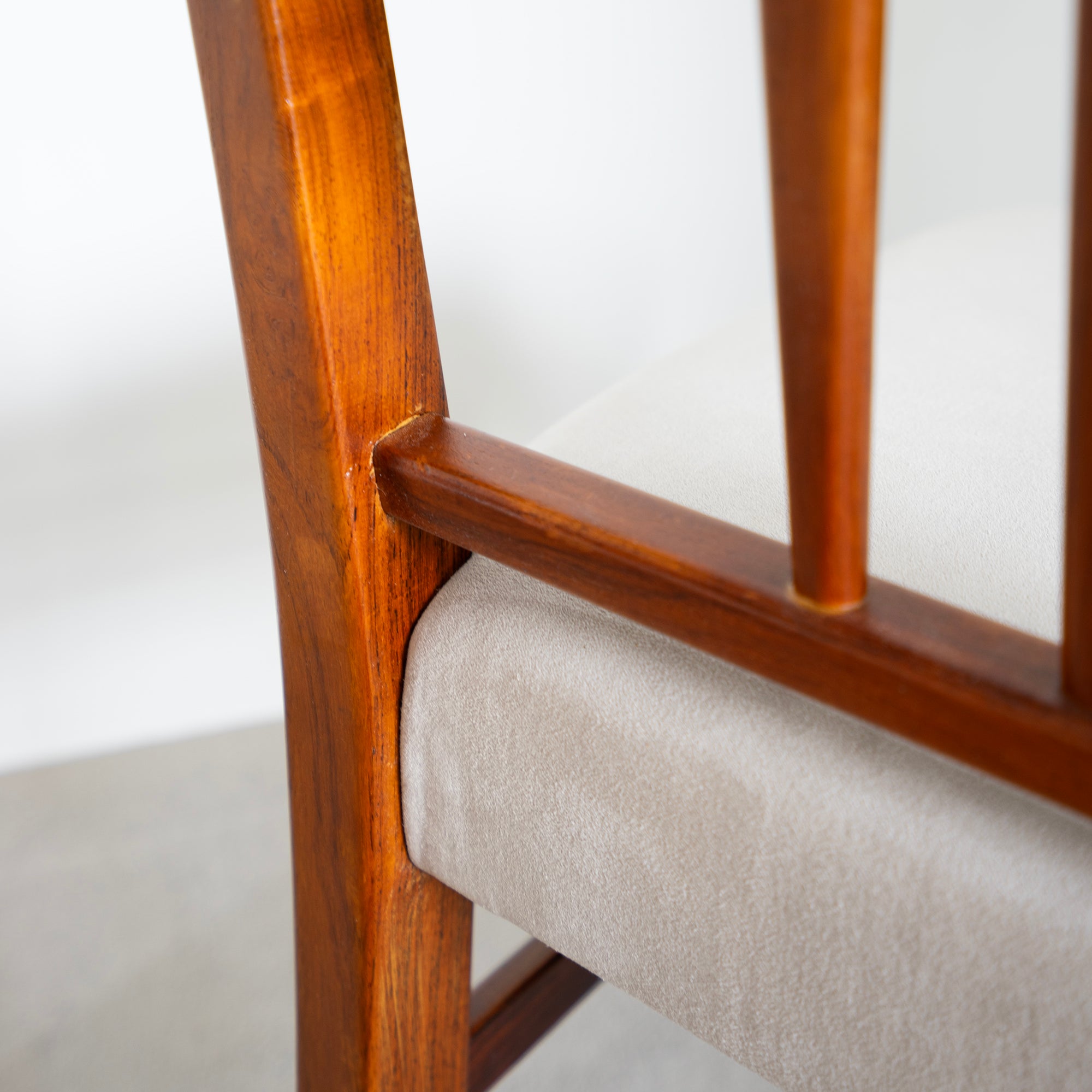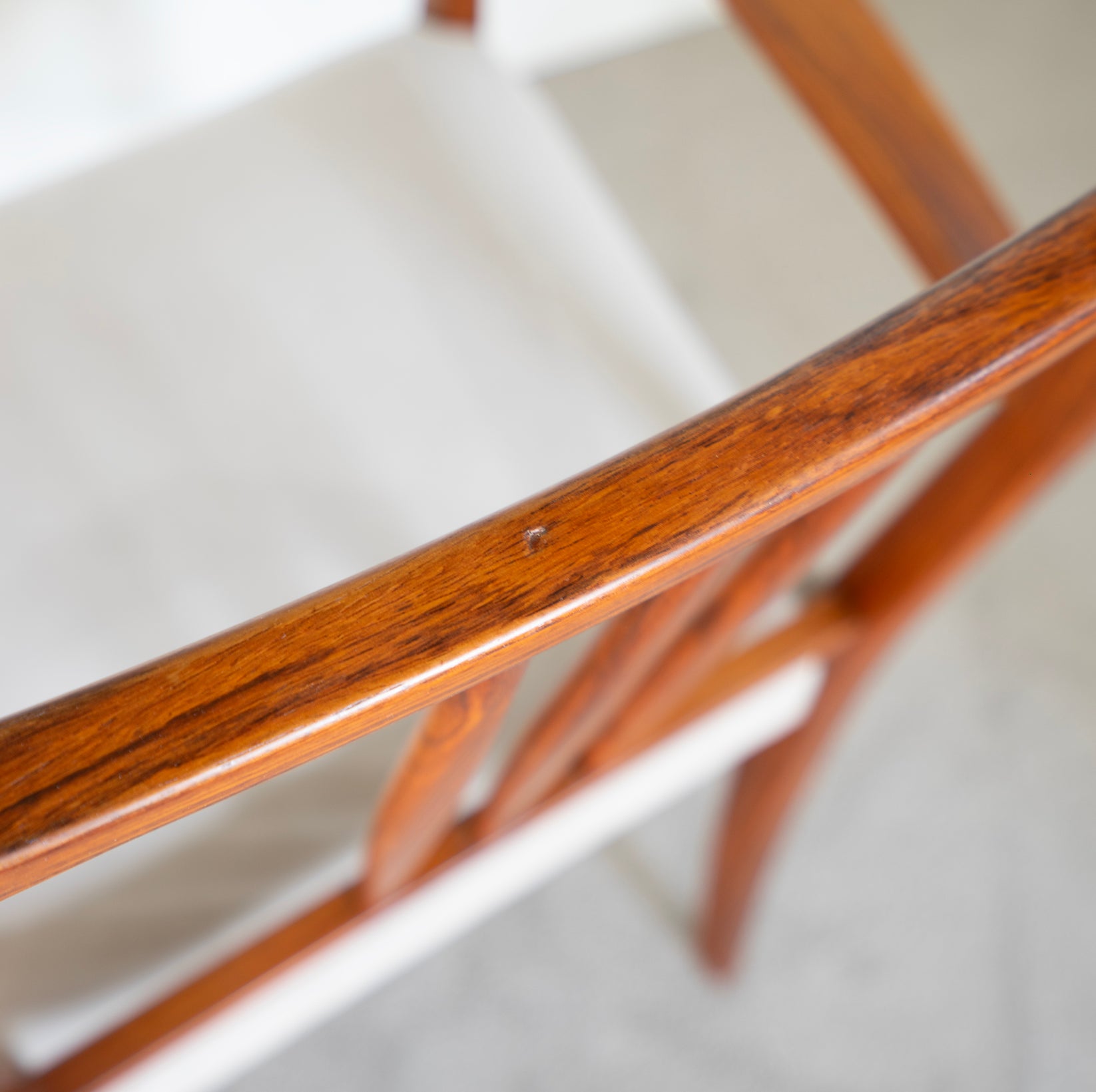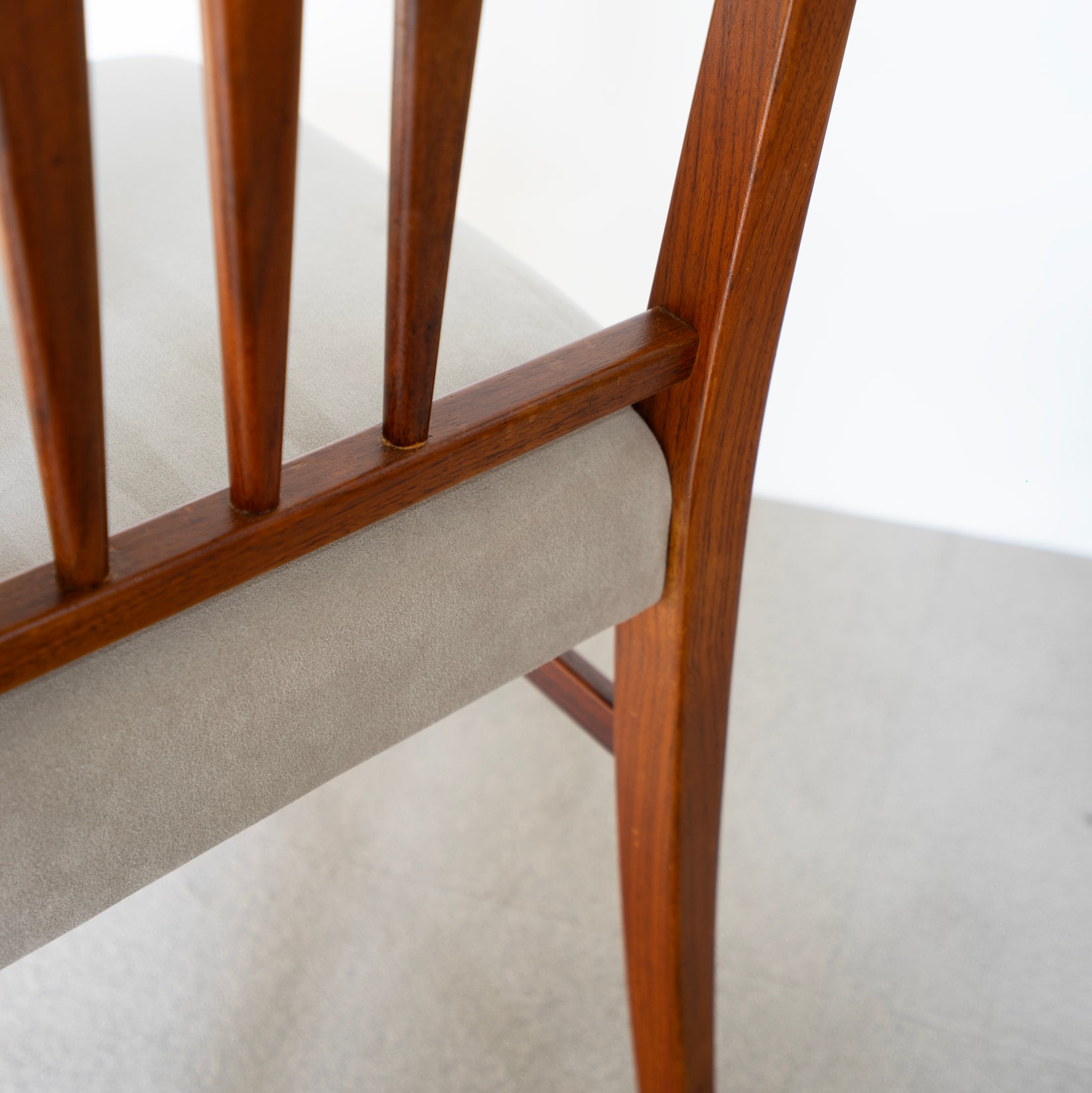フレームにはチーク材が使用されおり、座面は広く座りやすいチェアです。シンプルなデザインですが、アームや背もたれなど技巧が凝らされています。時代を超越したこのデザインは長年にわたり製造されていました。アーム付き、アーム無しと2種ご用意があります。