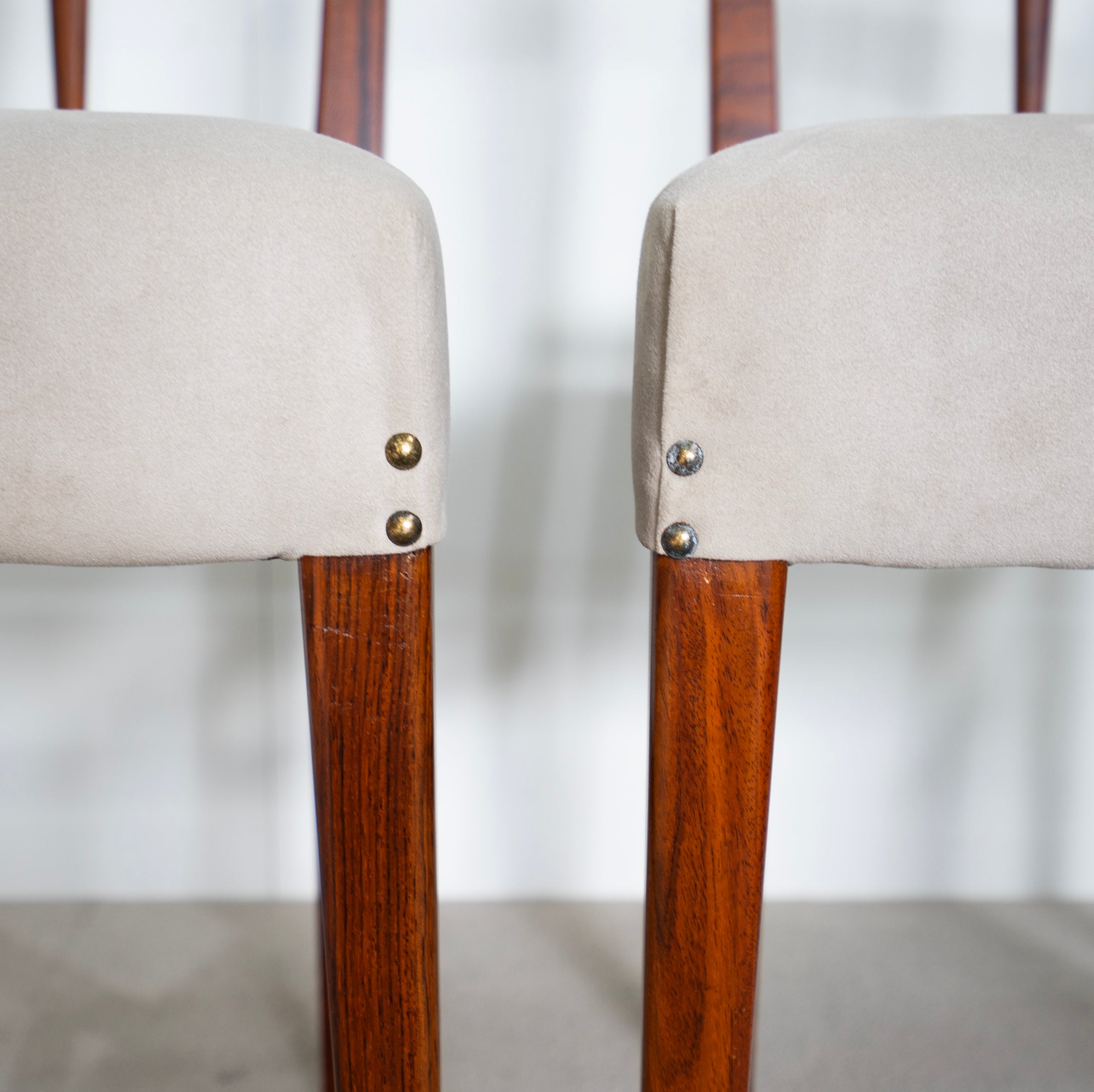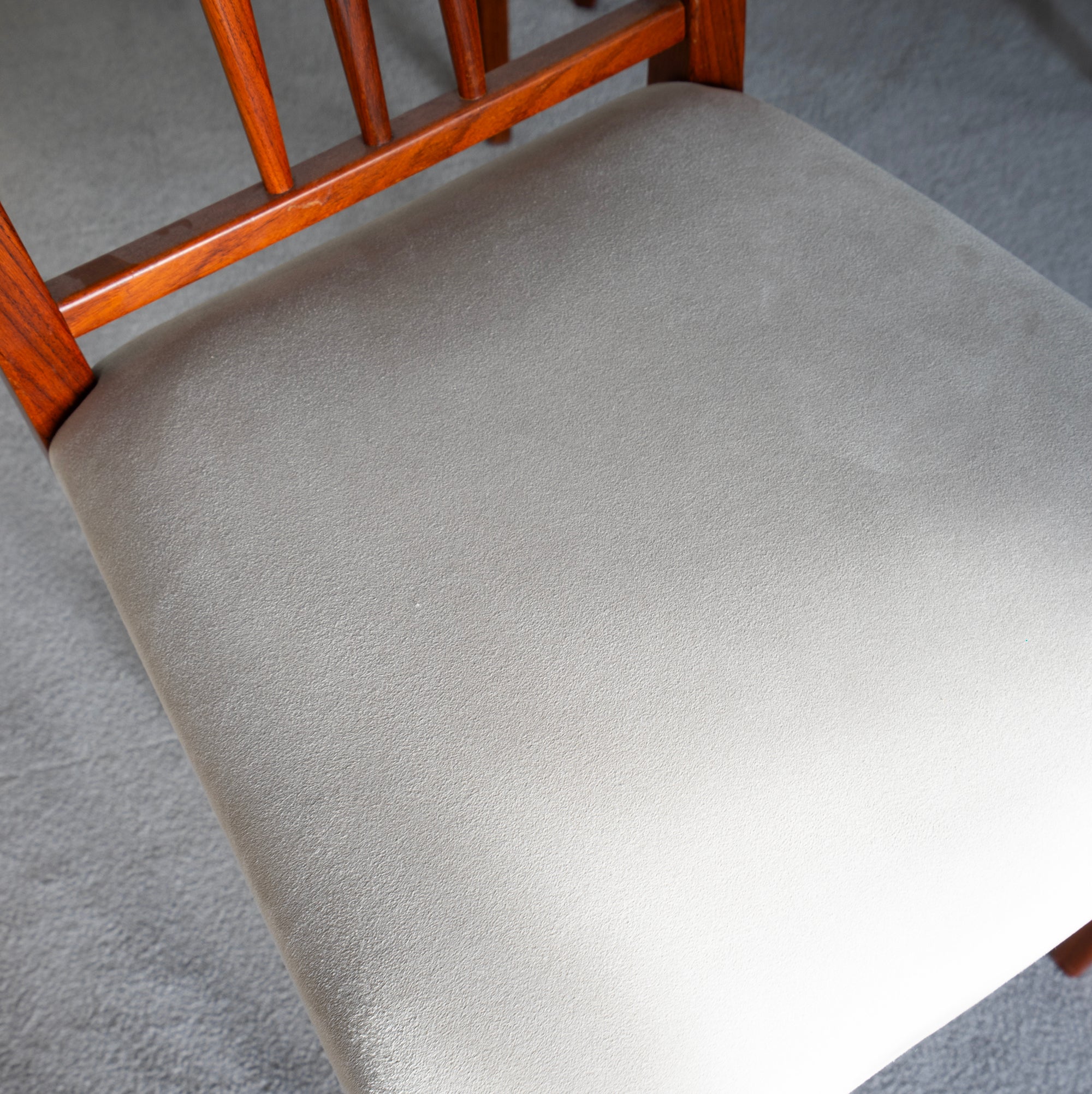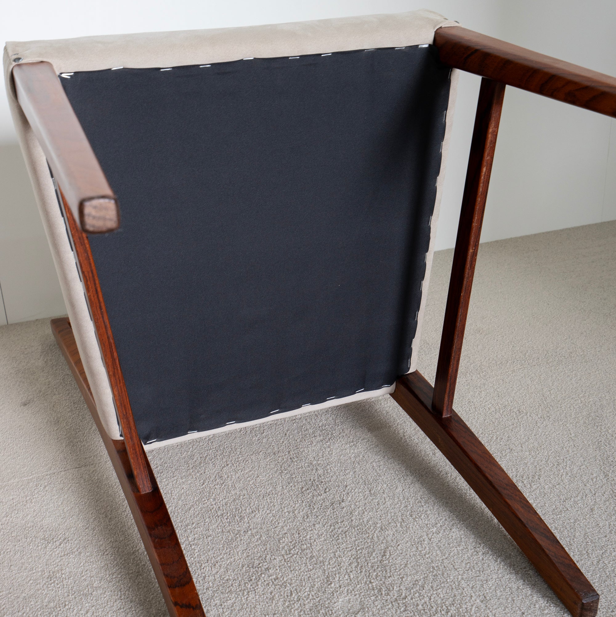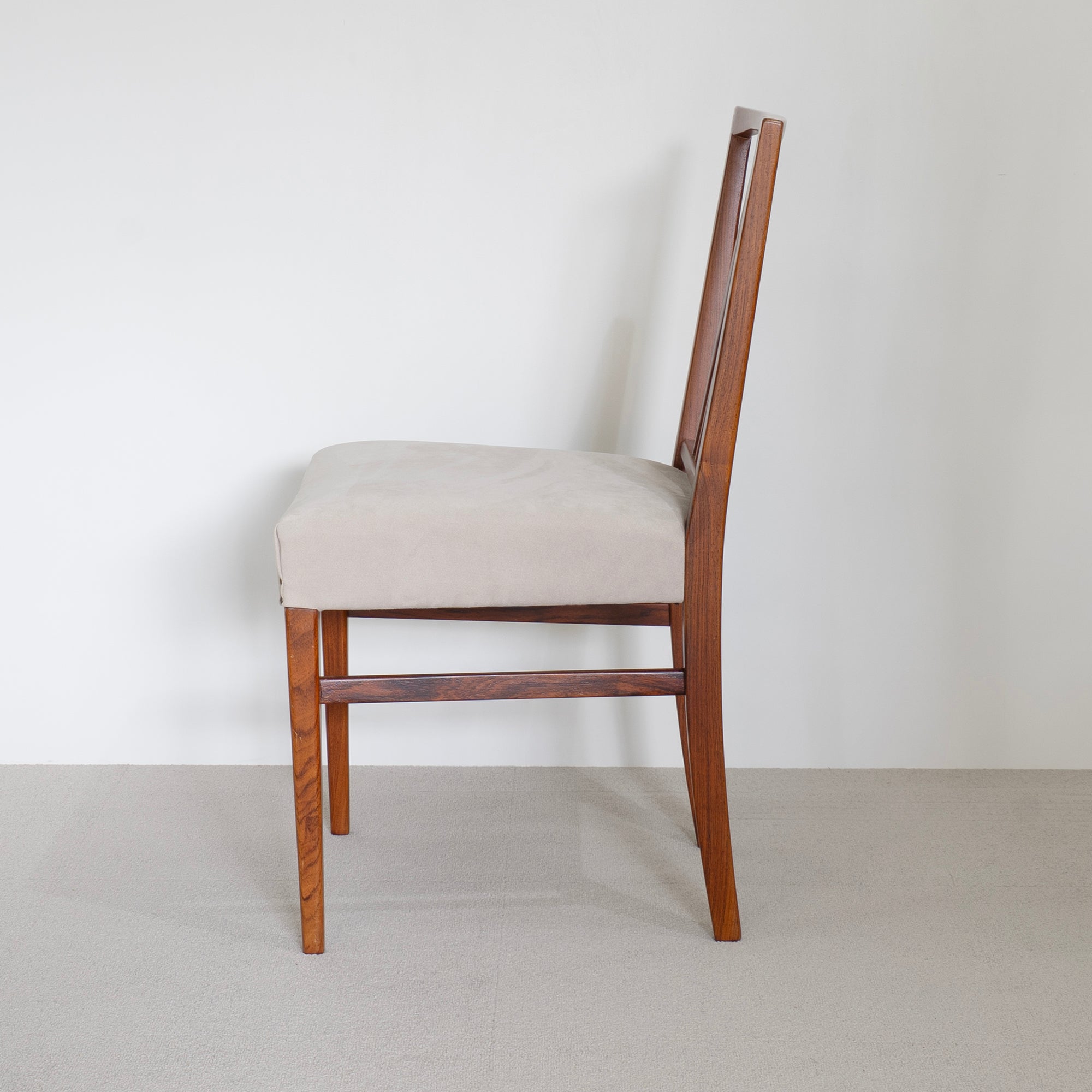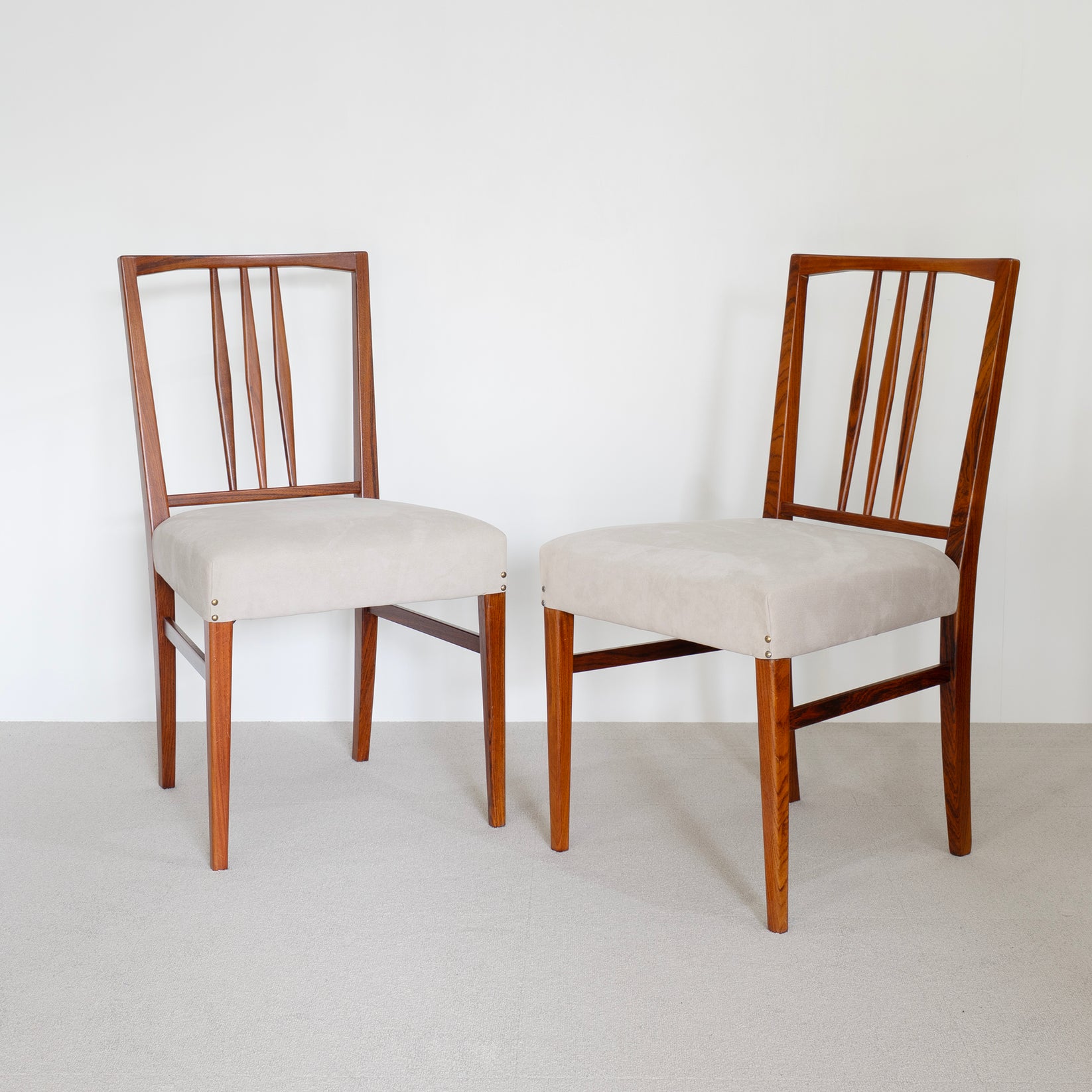 座面張り替え済みで、張地にはウルトラスウェードを使用しています。本物のスエードのような質感と上質な手触りでありながら、優れた耐久性とメンテナンスのしやすさが特徴です。シワになりにくく色落ちしにくいため、ファッションやインテリア、自動車のシートなど幅広い用途で使用されています。