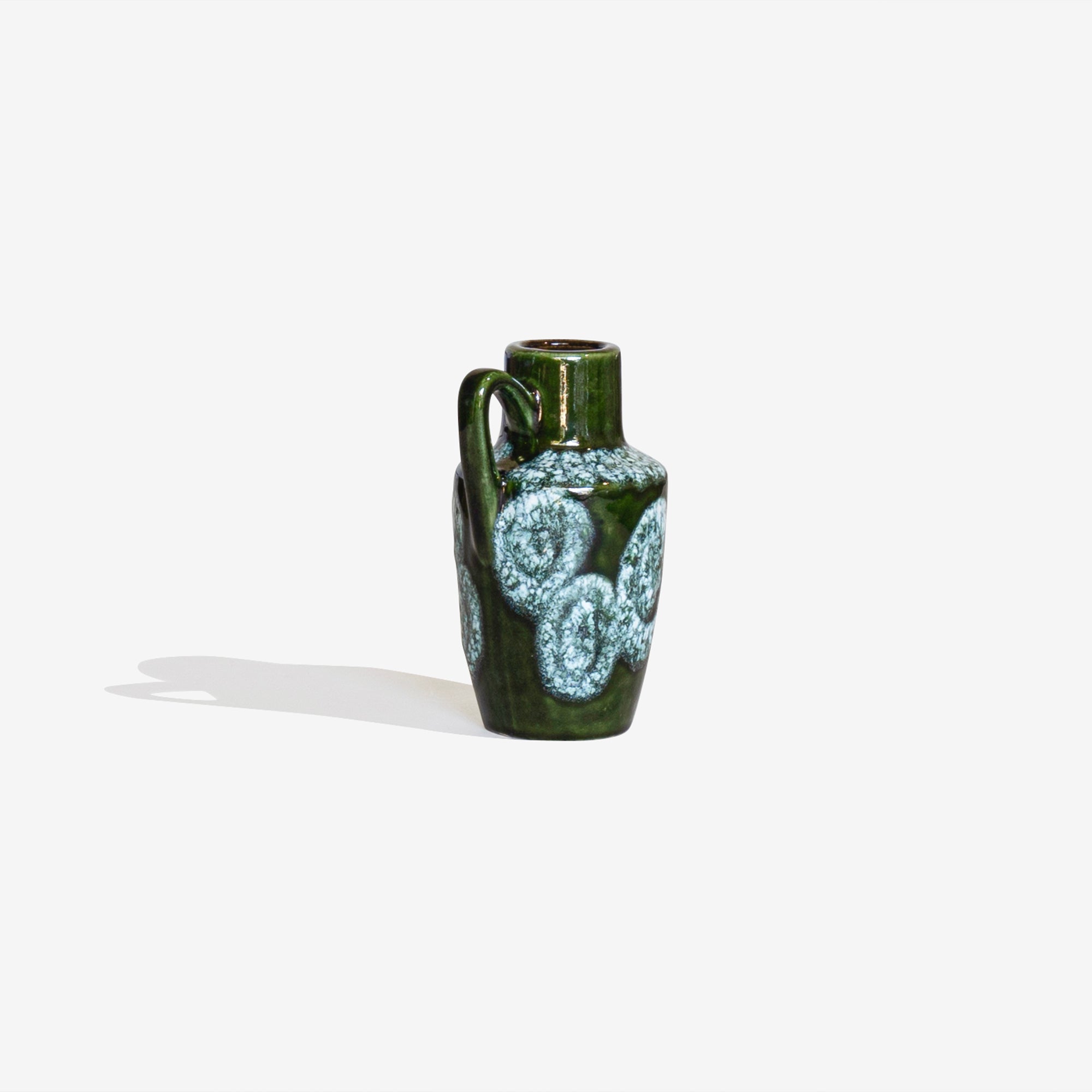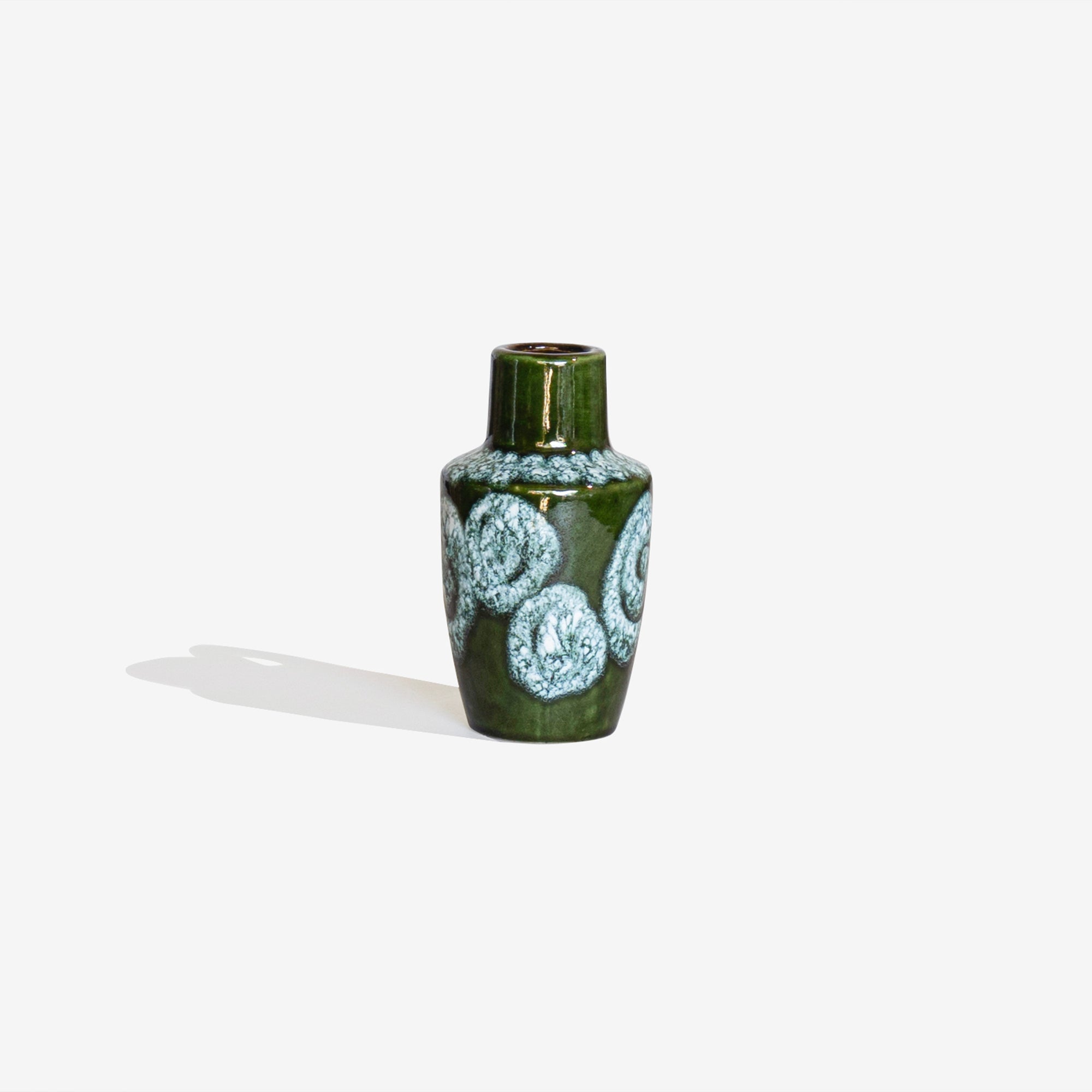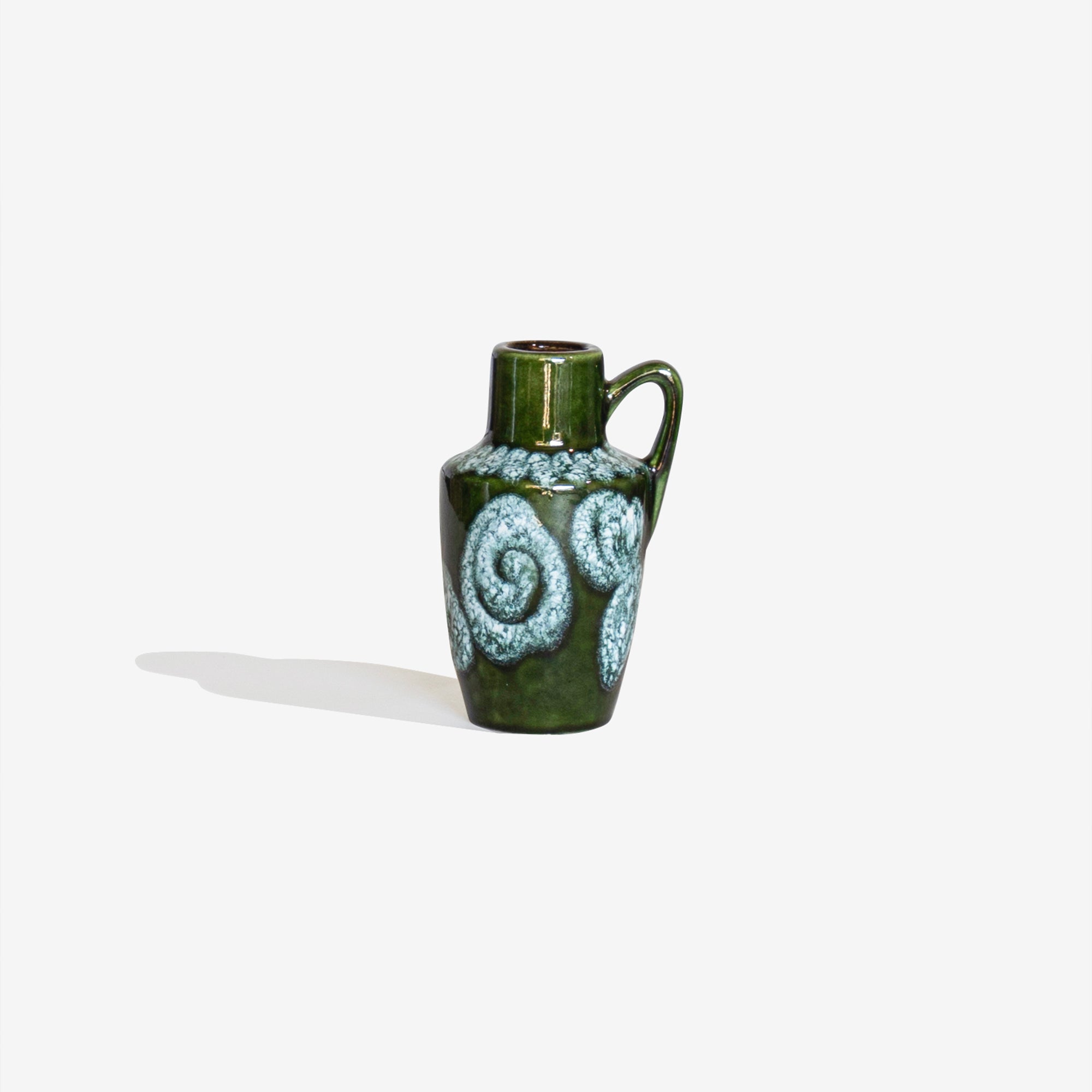1970年代にSCHEURICH社にて作られた Fav Lavaのフラワーベース。深みのあるグリーンと白の釉薬が美しく調和し、渦巻き模様が目を引くデザインとなっています。