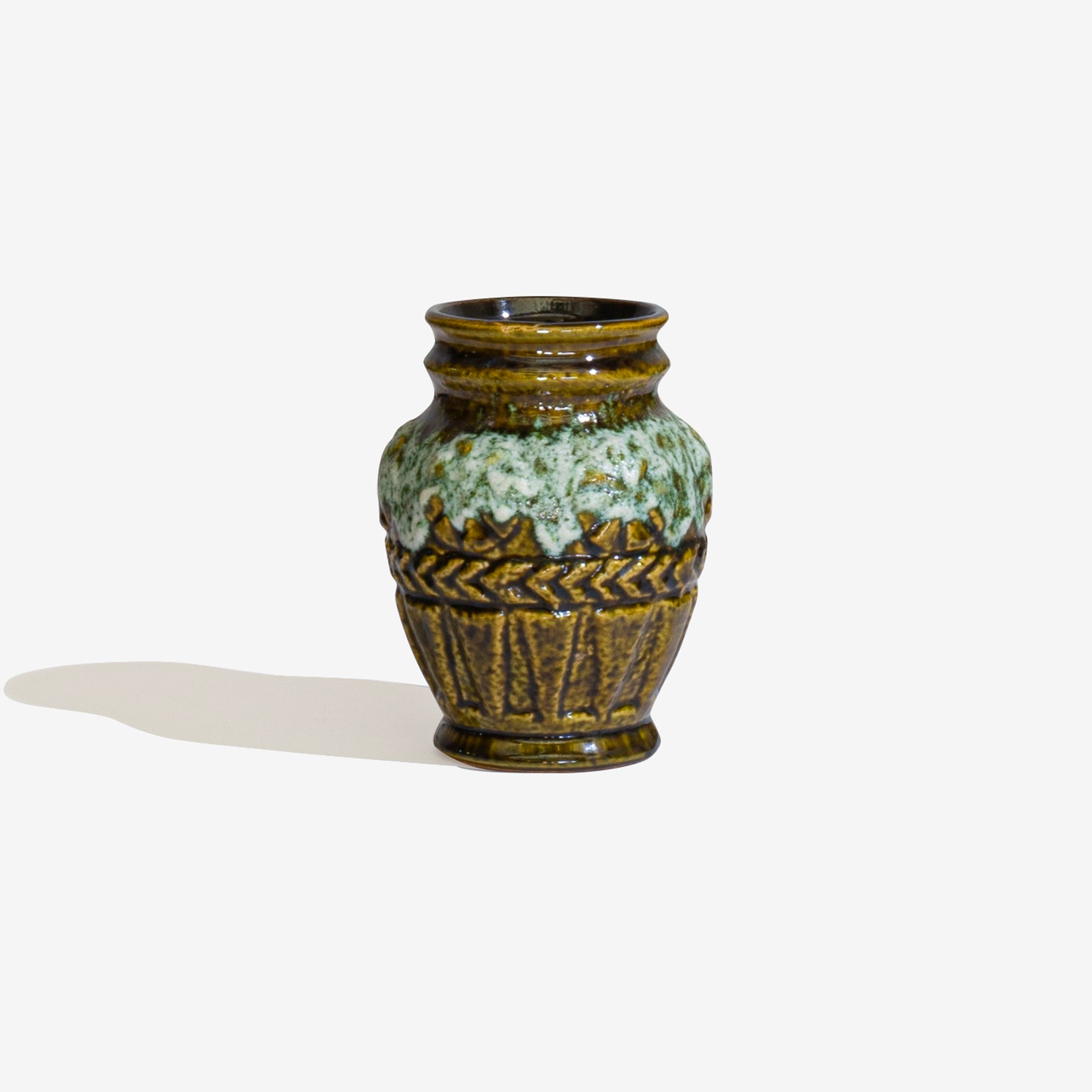 1950年代から1970年代にかけて主に旧西ドイツで製造された「Fat Lava」と呼ばれる陶器製アート。Fat Lava を直訳すると「Fat=肥えた」「Lava=溶岩」。釉薬がまるで溶岩にように溶け出て固まったようなテクスチャーが特徴の陶器製品です。第二次世界大戦後、旧西ドイツでは「West German Art Pottery」と呼ばれる芸術性を取り入れた陶器製品を積極的に生産する動きがあり、その流れで生まれたのが「Fat Lava」です。