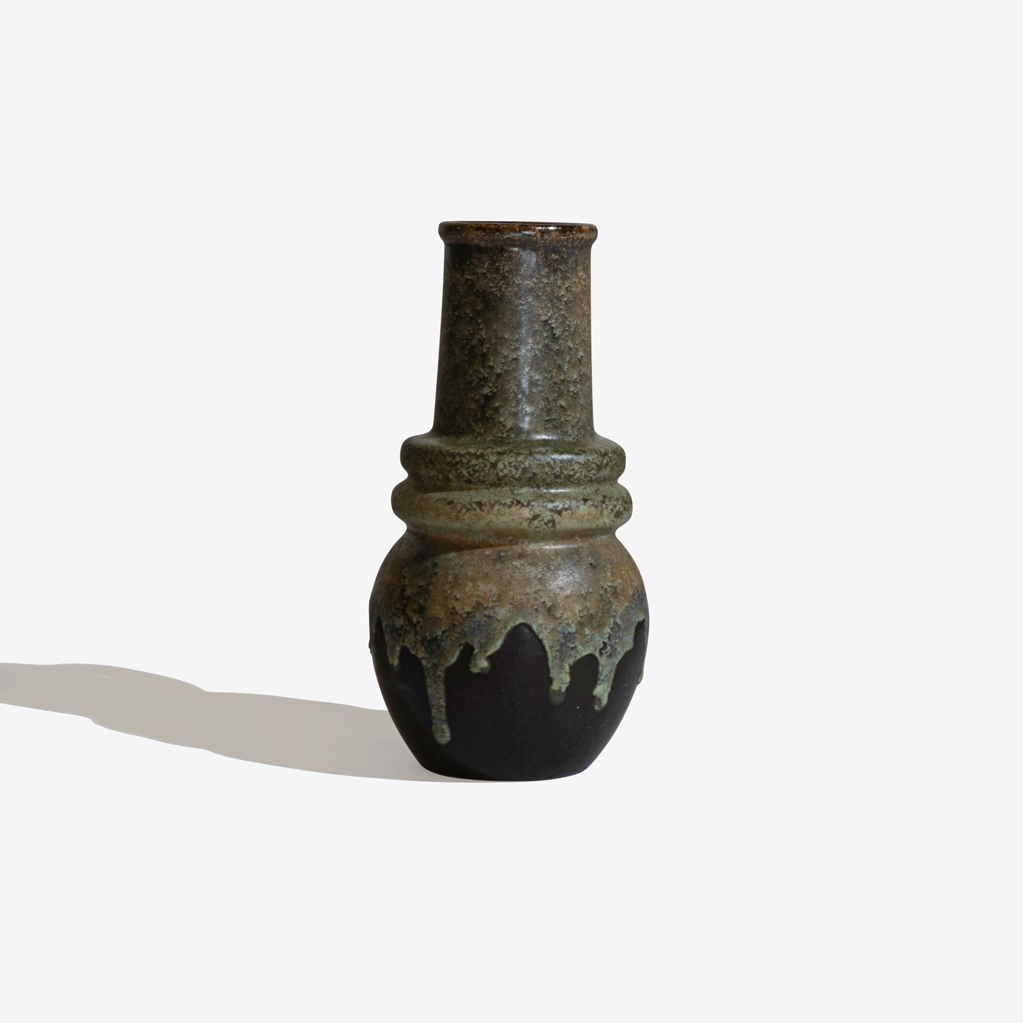 1970年代にSCHEURICH社にて作られた Fav Lavaのフラワーベース。独特の垂れ釉が施され、濃い茶色にライトブラウンとグリーンのアクセントが印象的です。