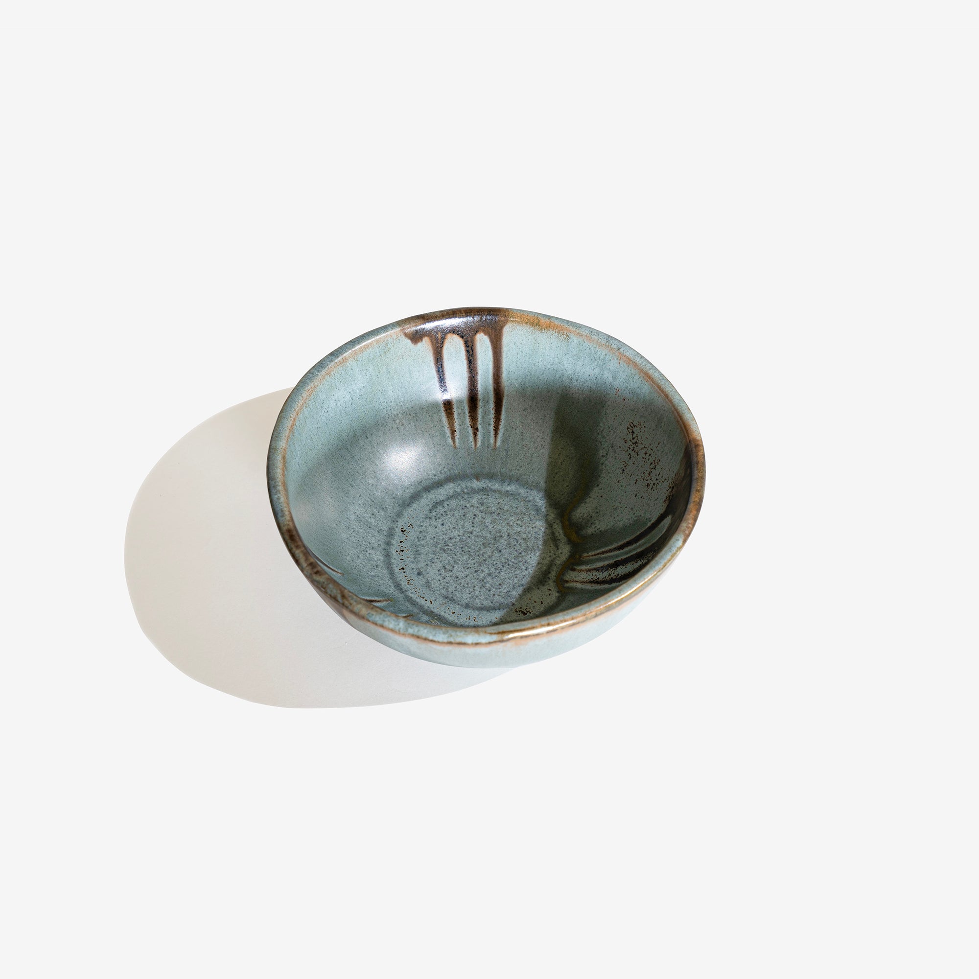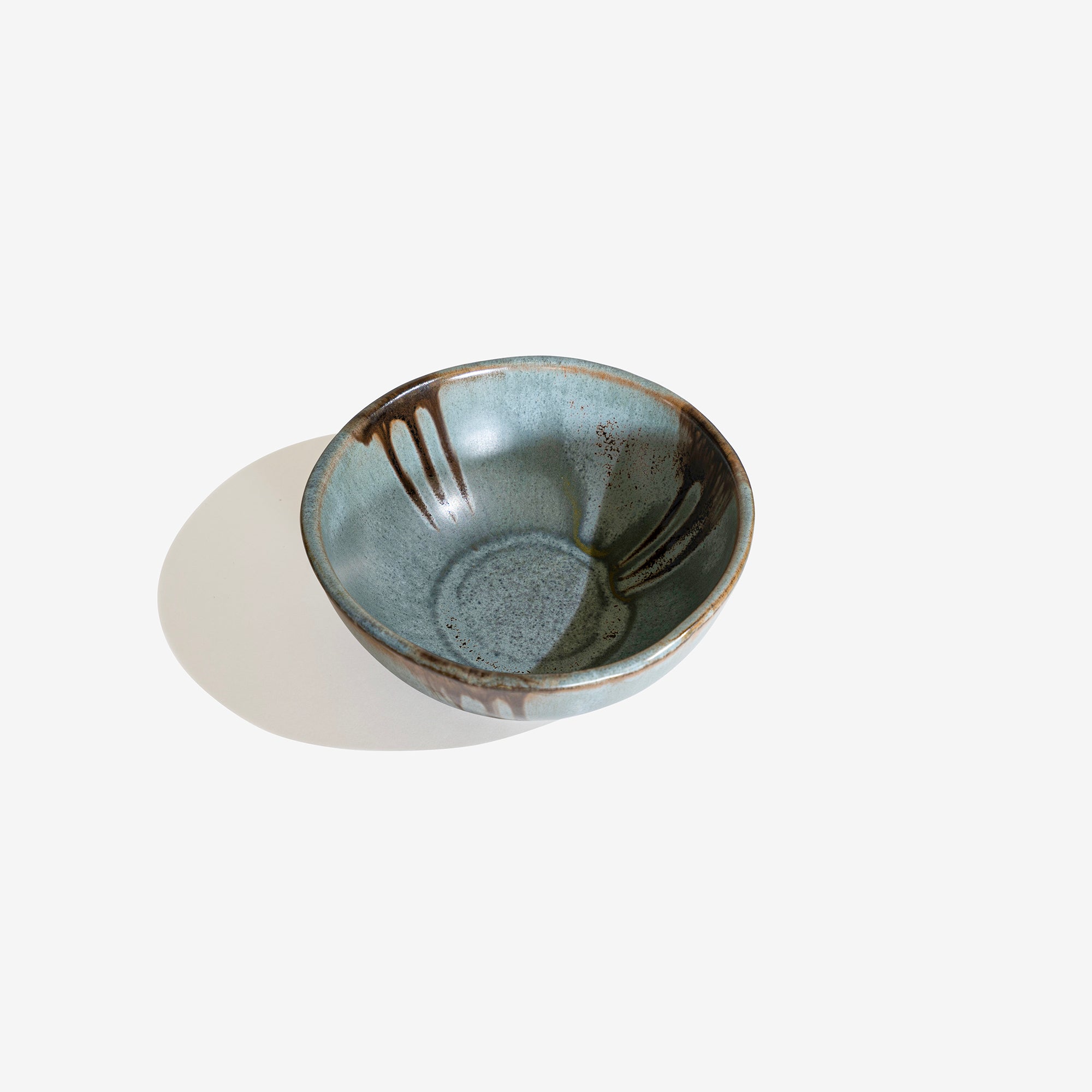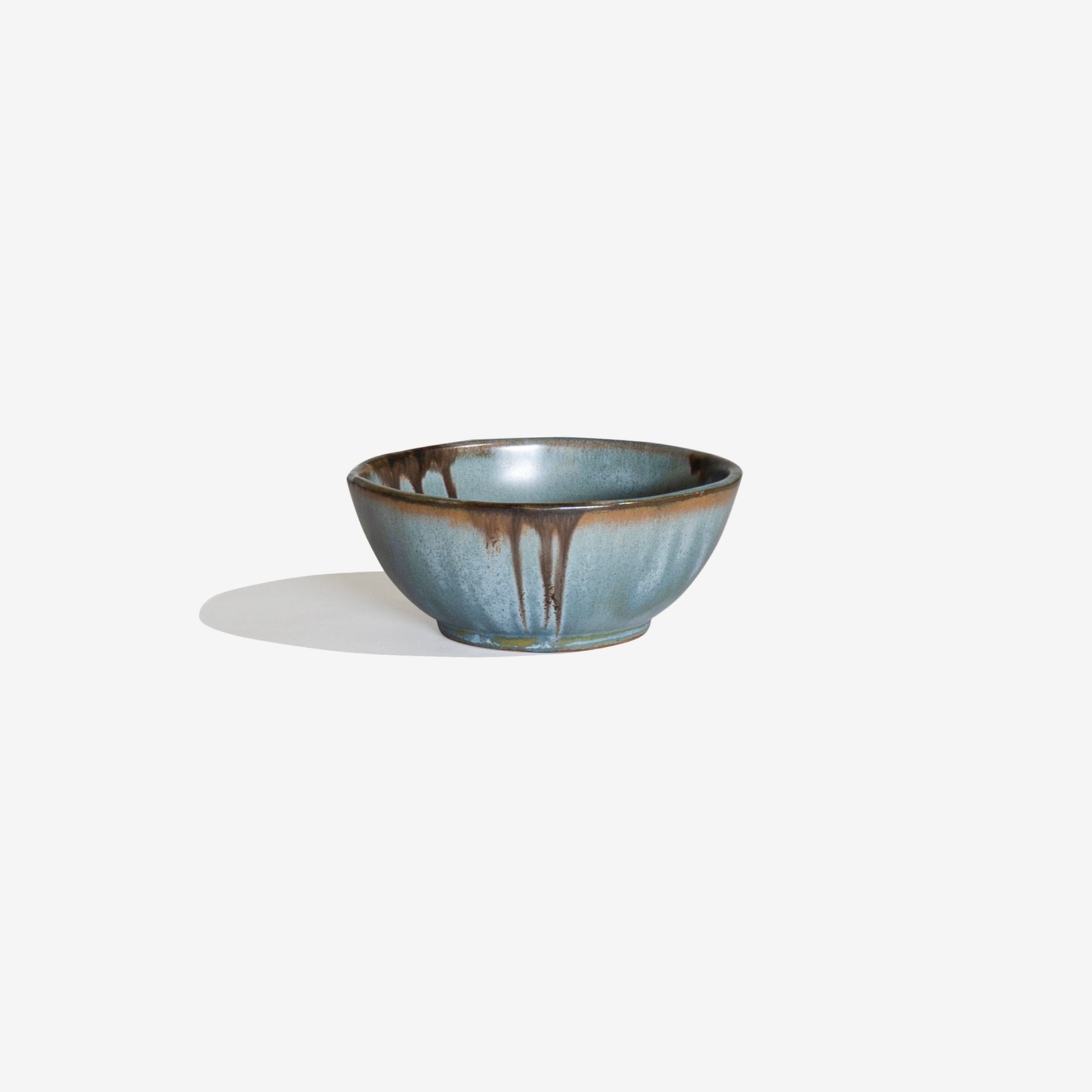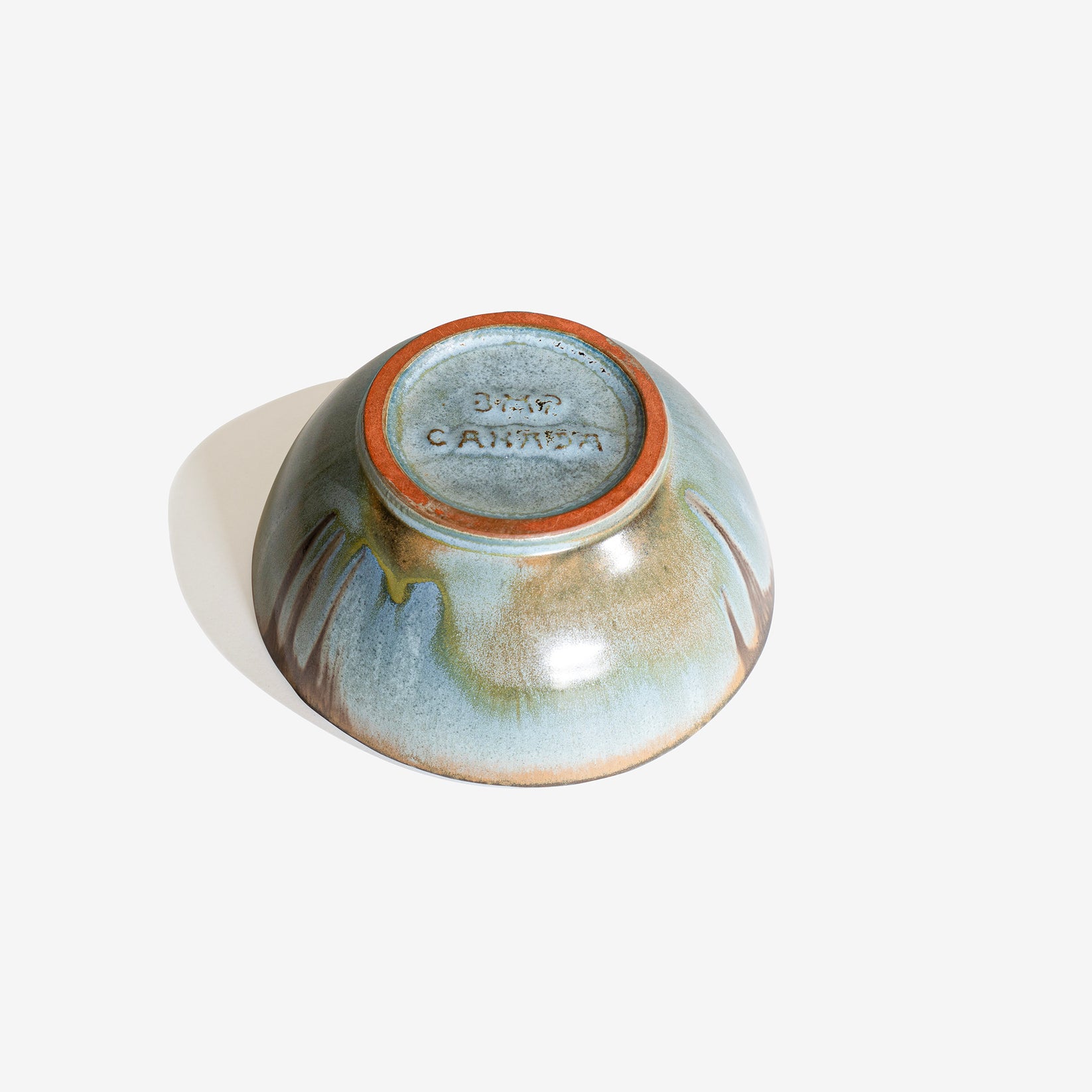 カナダのBlue Mountain Pottery社にて作られたヴィンテージボウル。美しい落ち着いたグレーとグリーンの釉薬に、ダークブラウンの垂れ釉がアクセントを添えています。