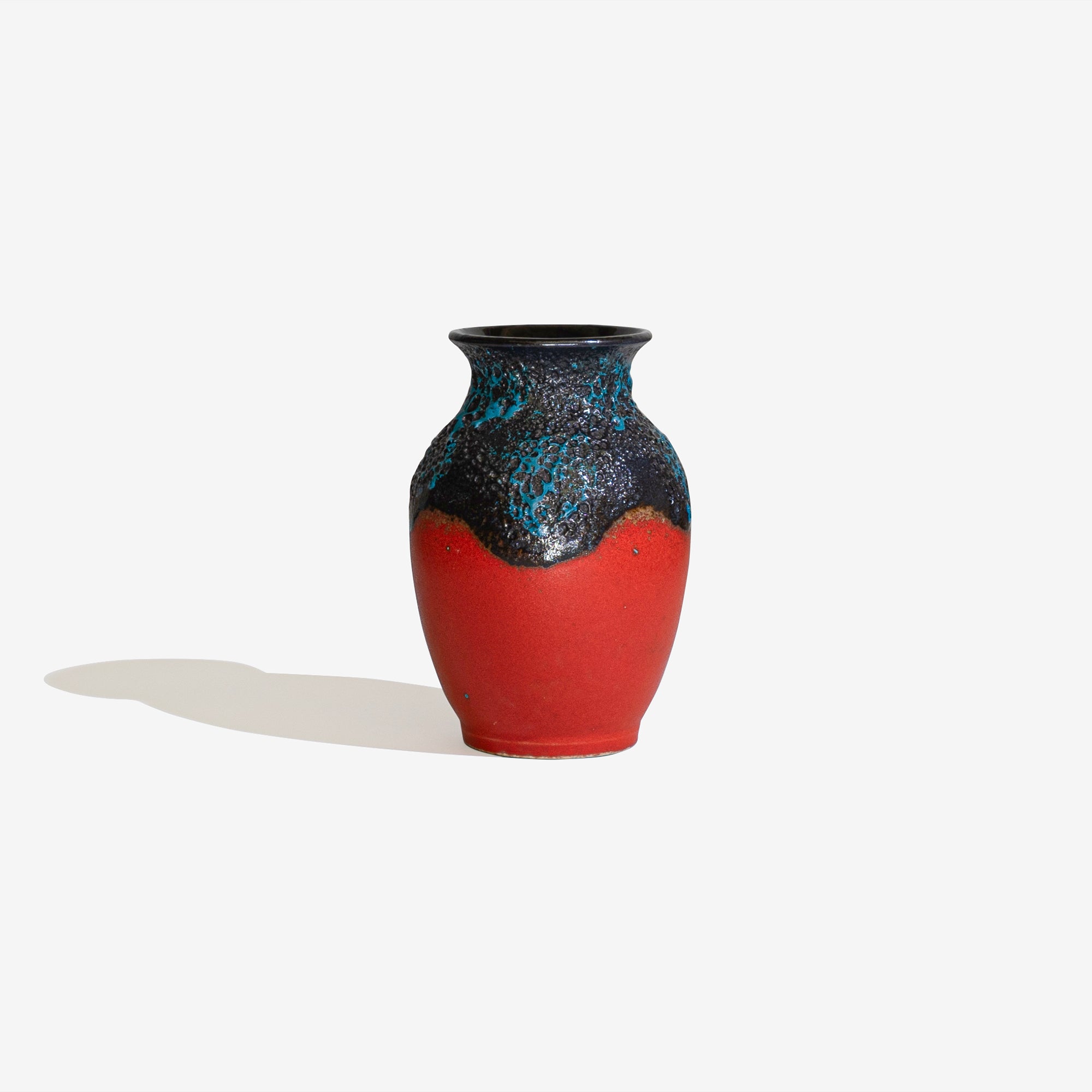 1970年代に作られたUBELACKER KERAMIC社製のフラワーベース。深みのある赤に黒い釉薬のコントラストが印象的です。