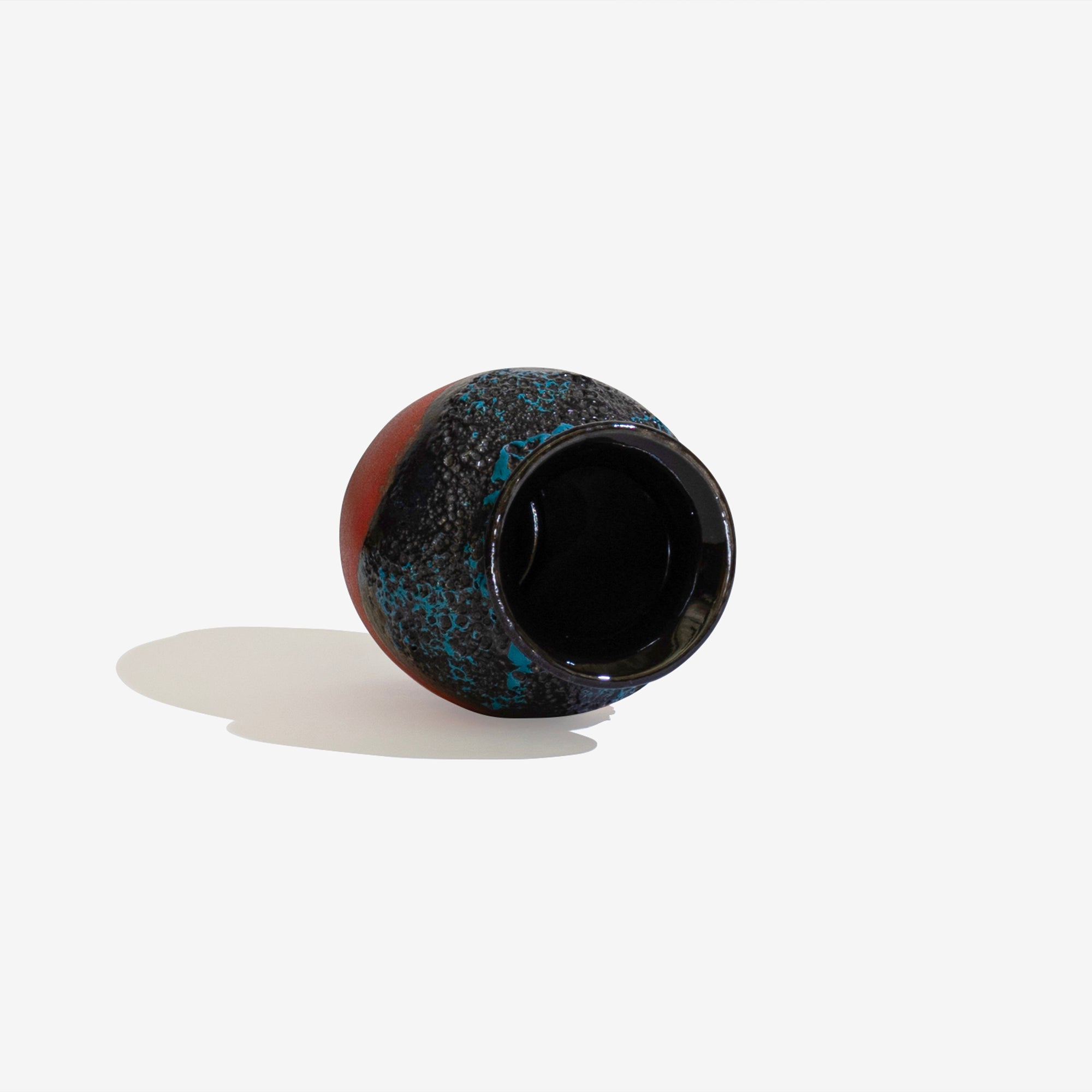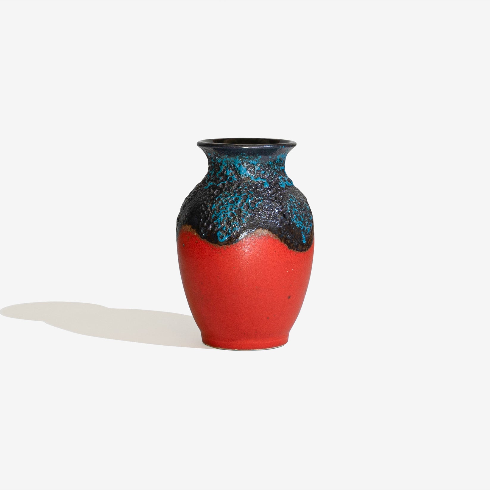 1950年代から1970年代にかけて主に旧西ドイツで製造された「Fat Lava」と呼ばれる陶器製アート。Fat Lava を直訳すると「Fat=肥えた」「Lava=溶岩」。釉薬がまるで溶岩にように溶け出て固まったようなテクスチャーが特徴の陶器製品です。第二次世界大戦後、旧西ドイツでは「West German Art Pottery」と呼ばれる芸術性を取り入れた陶器製品を積極的に生産する動きがあり、その流れで生まれたのが「Fat Lava」です。Fat Lavaの多くは機械によってベースが作られ、手作業によって釉薬を塗る作業が行われていました。全盛期には、100を超える陶器製造会社がさまざまなデザイナーとともに製品を作り、各社が釉薬の種類や塗り方を変え特徴のある製品を生み出しました。