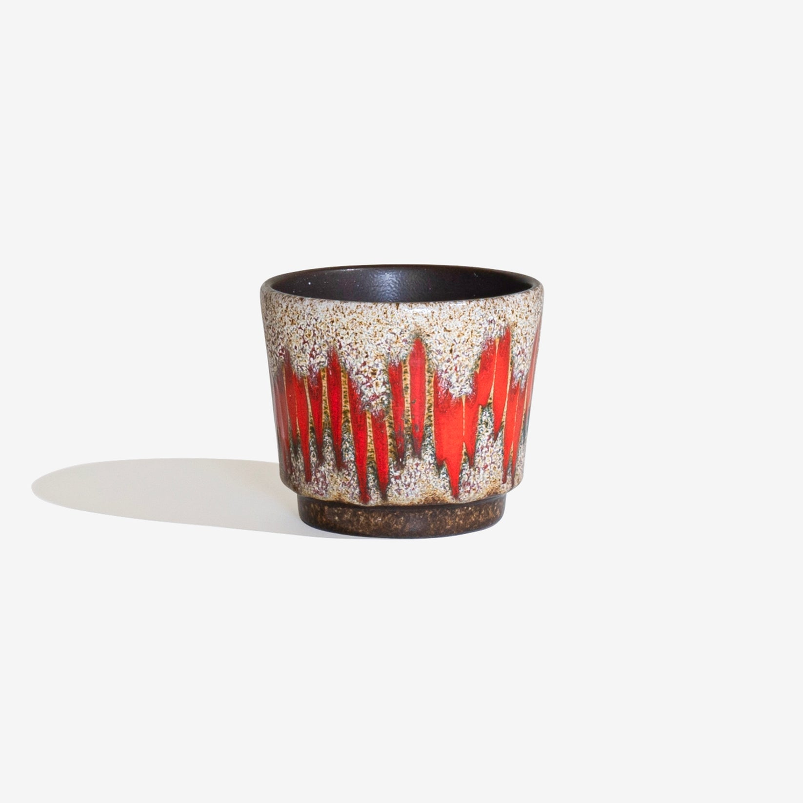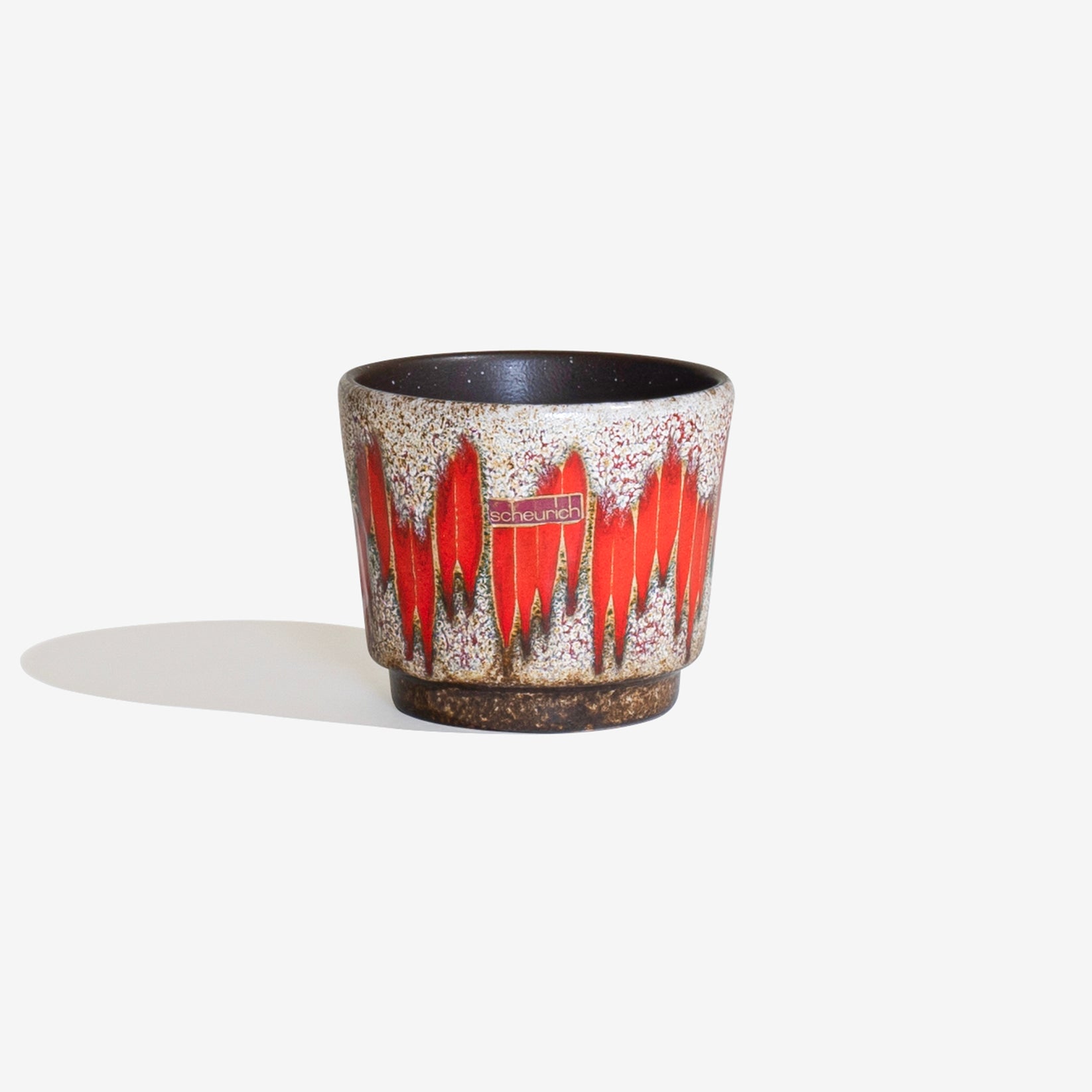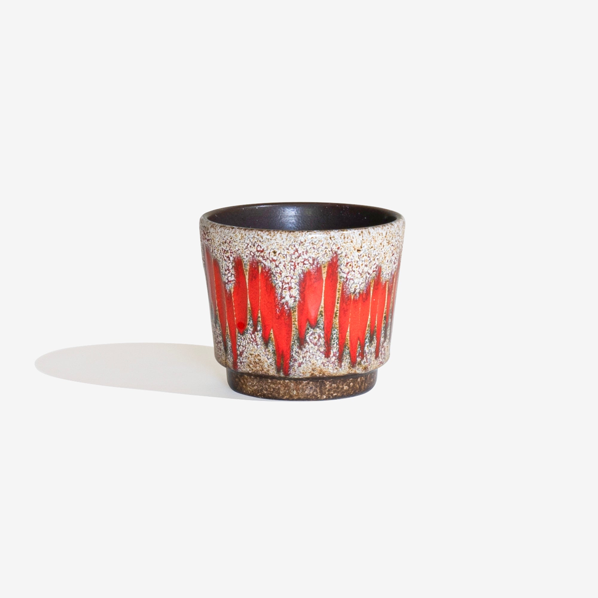 1970年代にSCHEURICH社にて作られた Fav Lavaのフラワーポット。1960-1970年代の代表的なシリーズのひとつであるLoraシリーズの植木鉢です。赤い釉薬と火山のような白い釉薬が特徴的です。