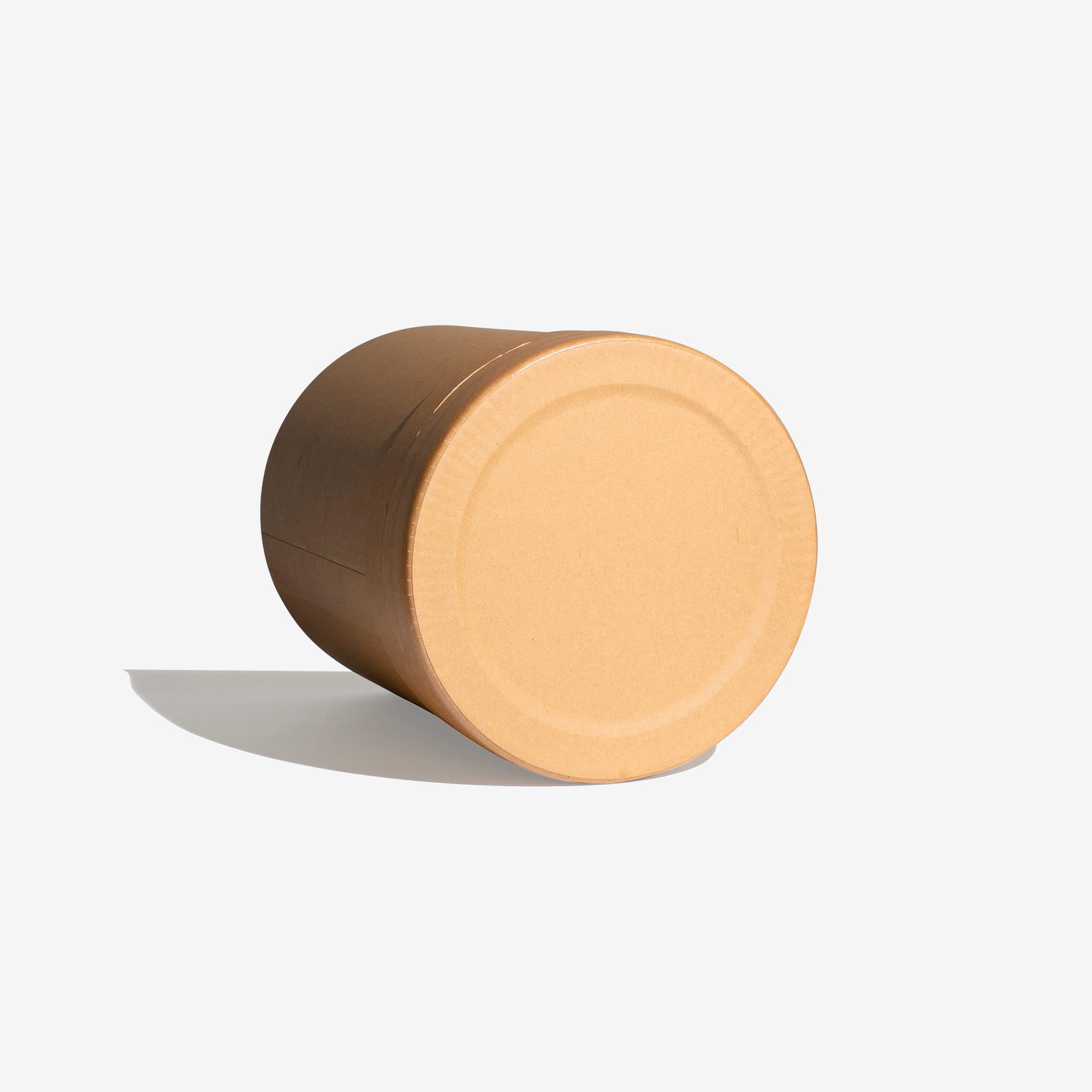元々は化学品や医薬品の海外輸送時の容器として使用される紙製のドラム。紙製なので軽く、輸送用なので強度があります。