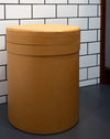 蓋の取り外しがしやすいので、住宅や店舗の収納として使いやすい仕様のファイバードラムです。底面には防水用フィルムが貼られています。キッチンで食材のストック収納や雑貨、おもちゃなど様々なものを収納するのに活躍します。腰をかけることもできる強度があります。