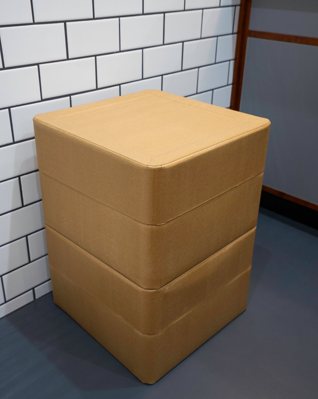 元々は化学品や医薬品の海外輸送時の容器として使用される紙製のドラム。紙製なので軽く、輸送用なので強度があります。