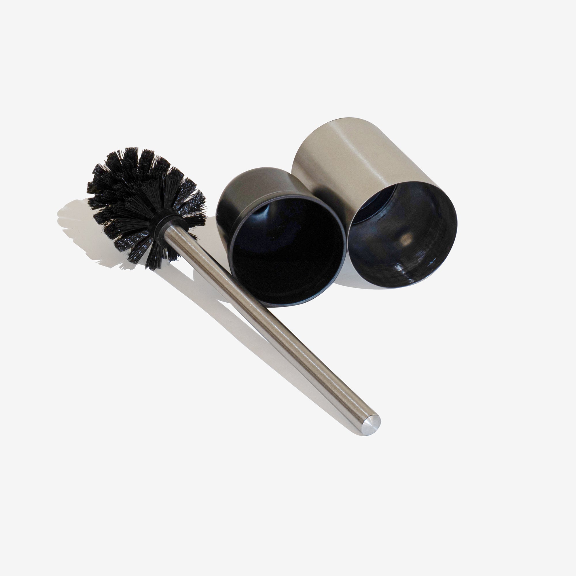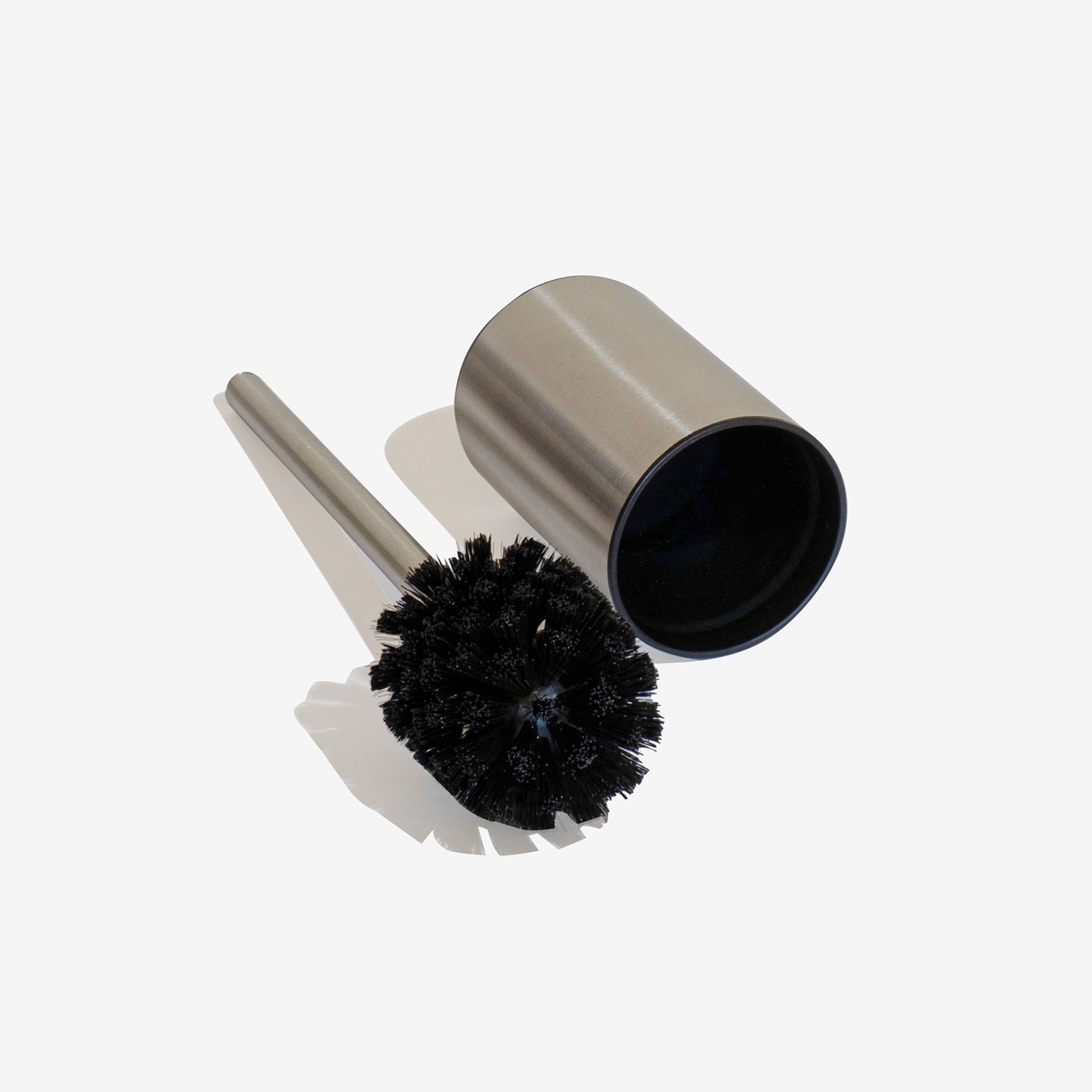 日本だと樹脂製の物が主流ですが、クロームとステンレスで構成されてる水廻り空間にはステンレス製のトイレブラシは自然だと考えました。