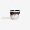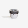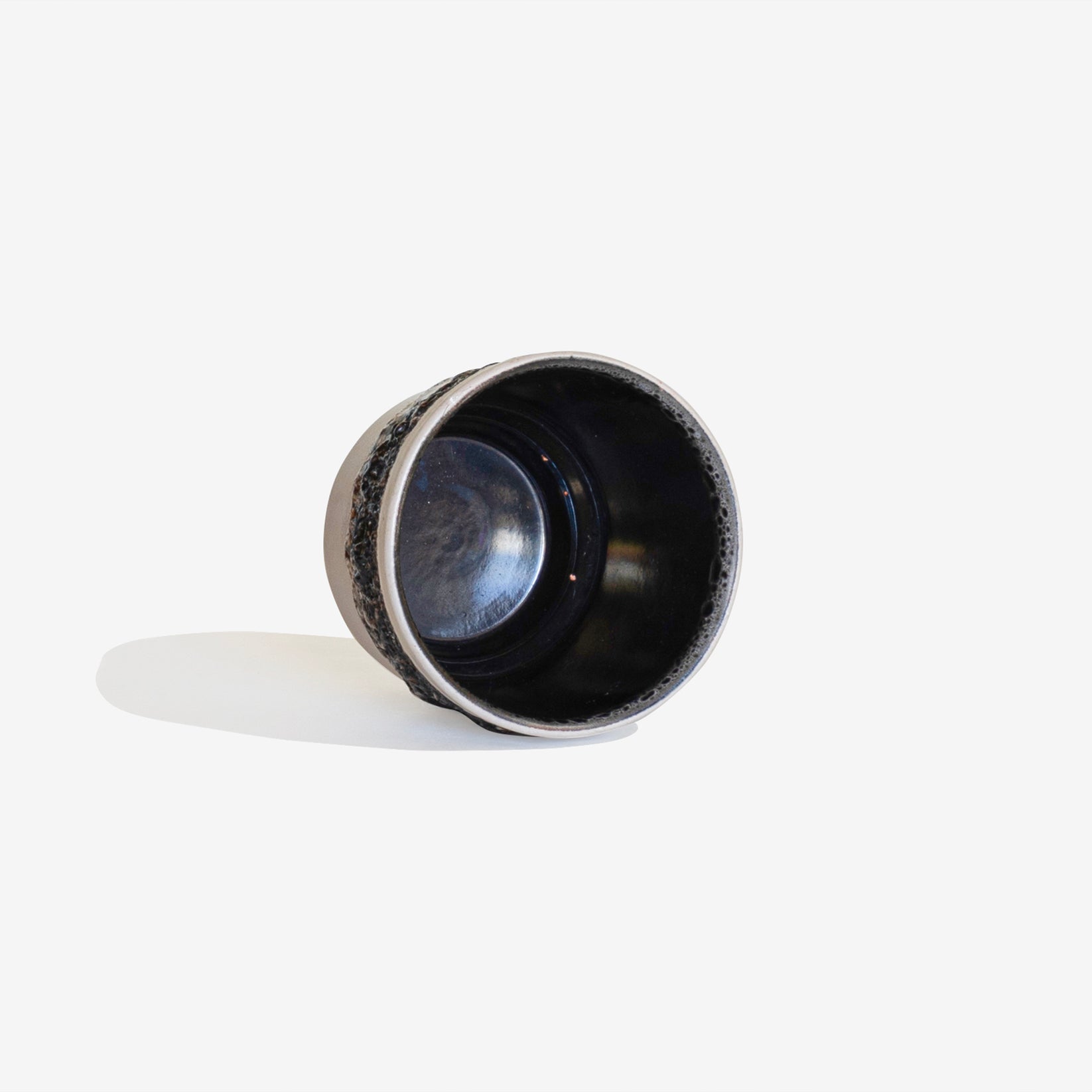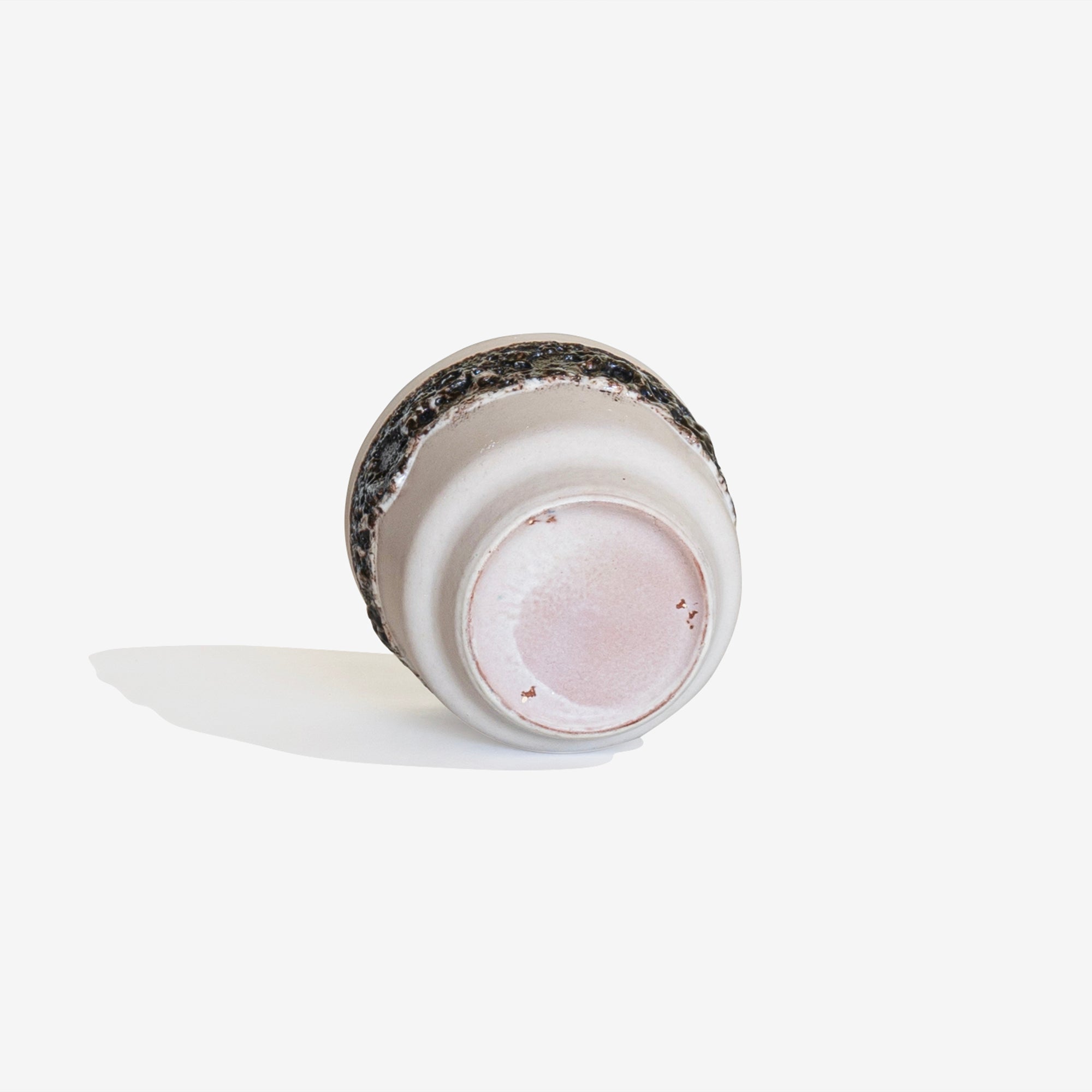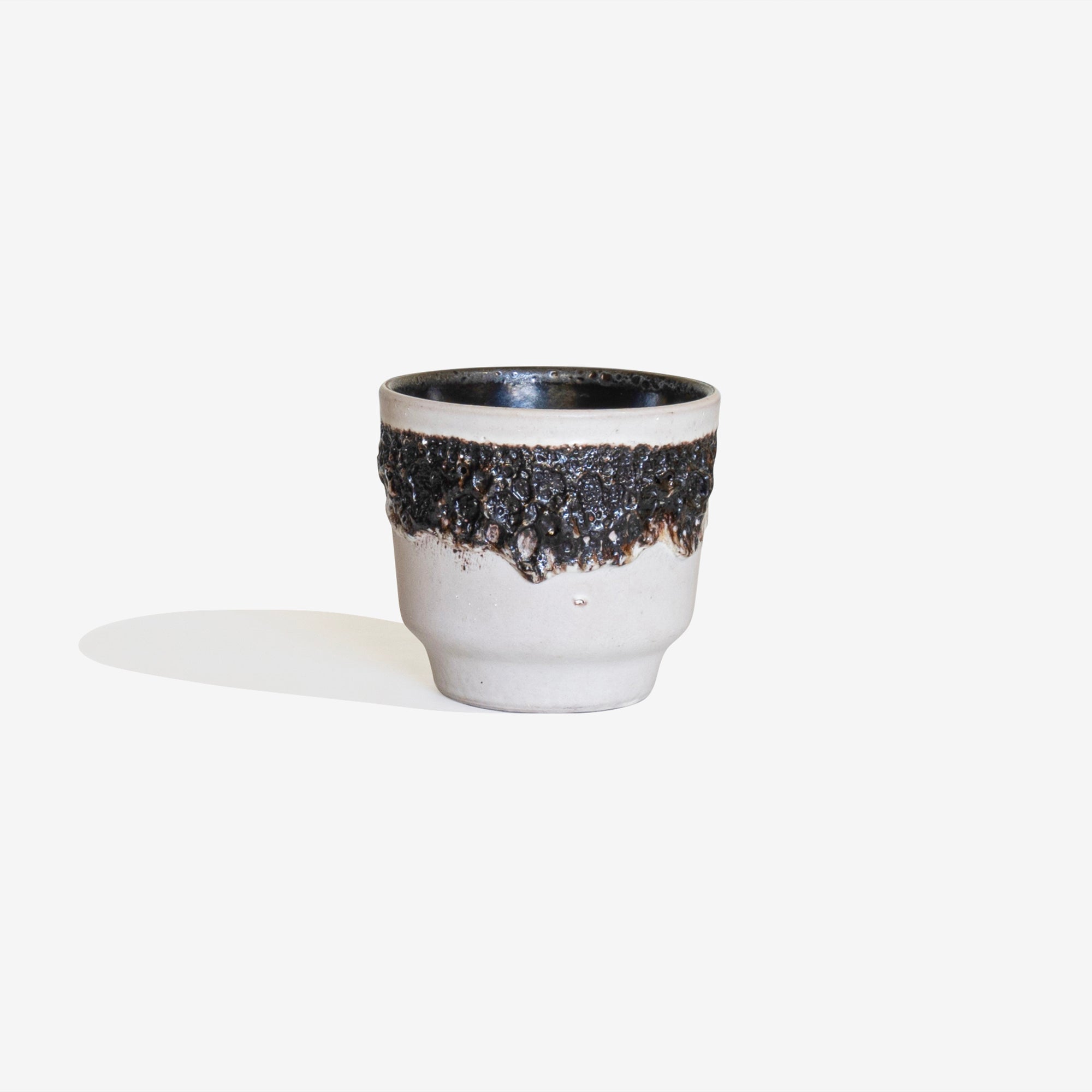 白をベースにごつごつとした黒の溶岩釉薬が特徴です。サイズ:外寸 φ140 × H130mm