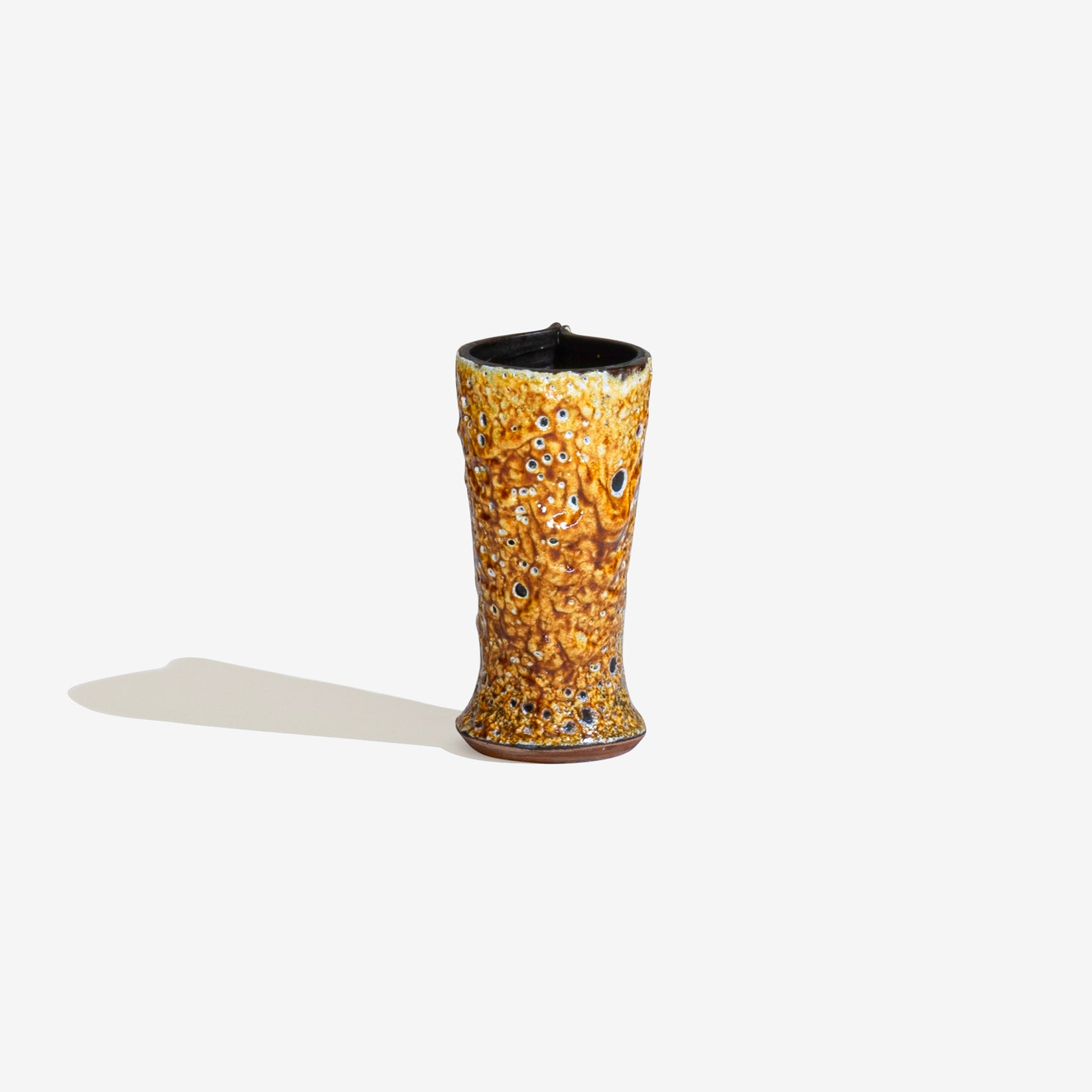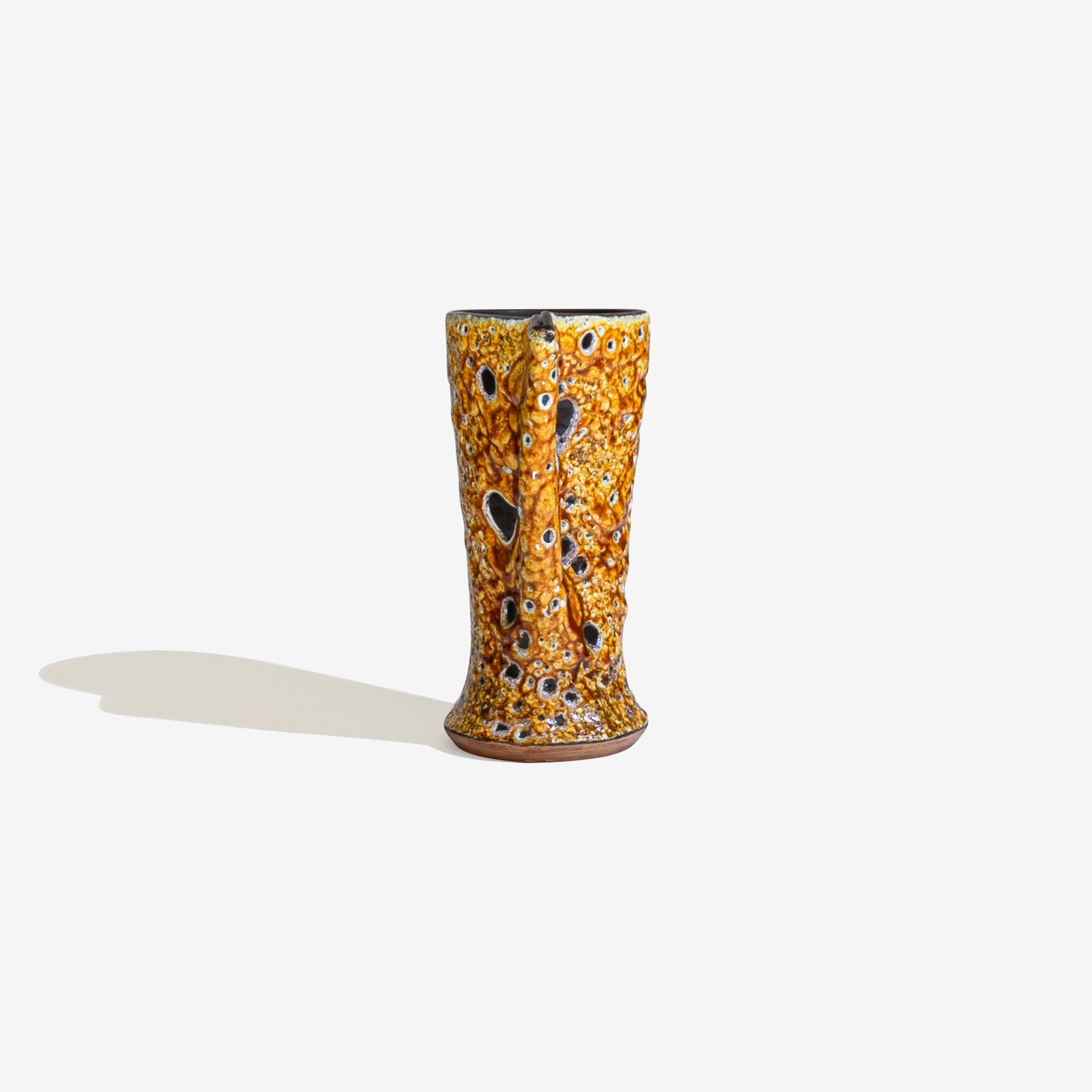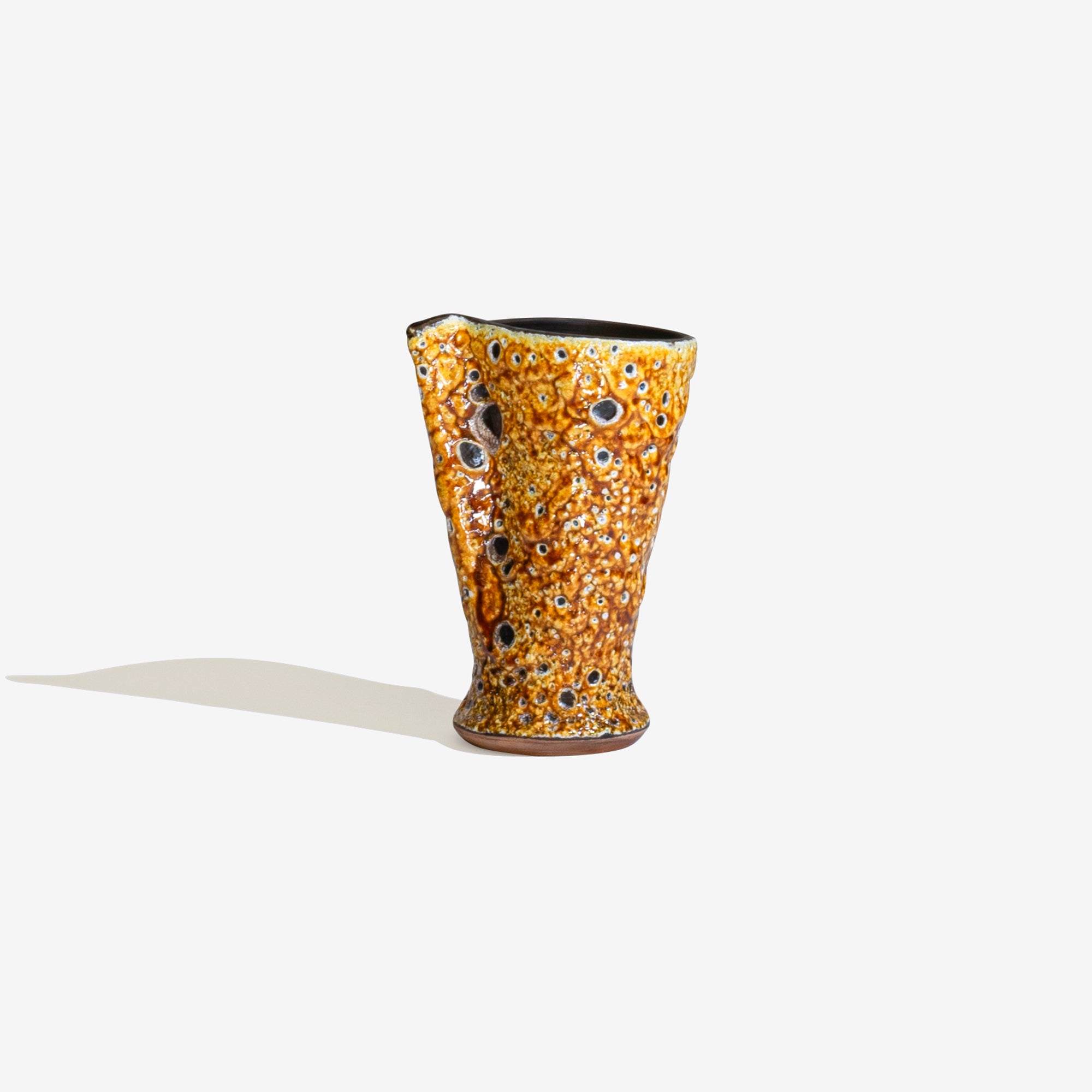1950年代にフランスののLE CYCLOPE POTTERY d'Annecy Ceramicにて作られたフラワーベース。Charles Cart(チャールズ・カート)によるデザインで、美しい黄色の釉薬と「ミエル」と呼ばれる火山のような釉薬が施されています。西ドイツのファットラバとは異なる美しいテクスチャーです。