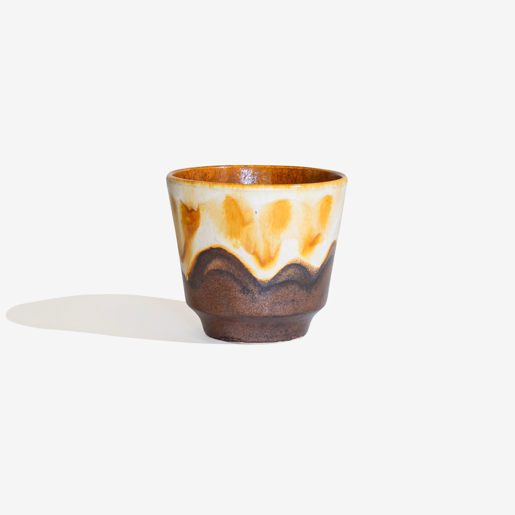 1970年代に作られたDUMLER & BREIDEN 社製のFav Lavaのフラワーポット。鮮やかなオレンジと黄色の釉薬が印象的です。